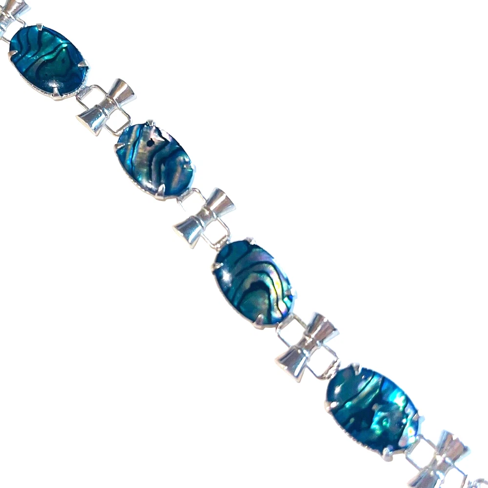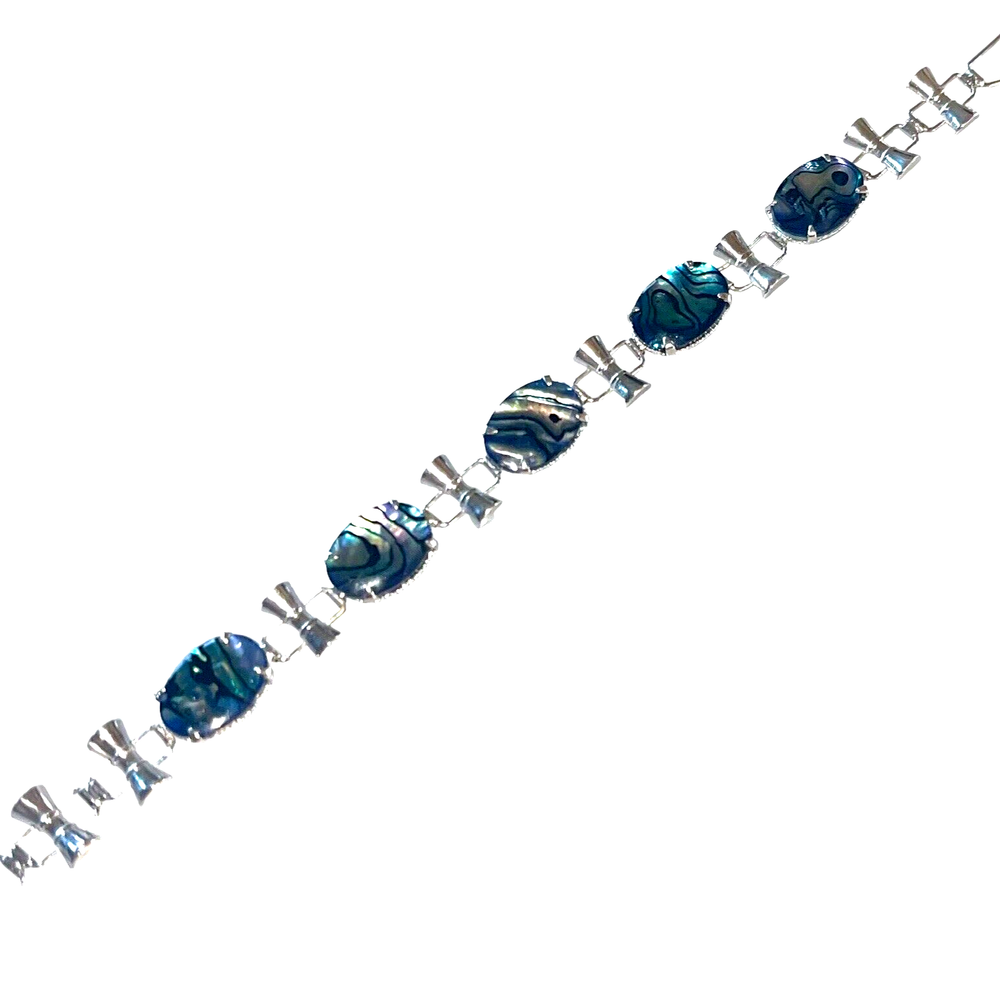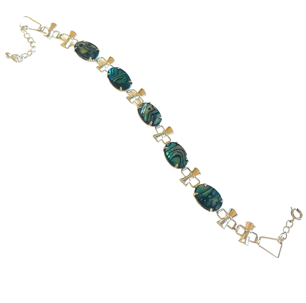 Cool women's silver tone link bracelet. Bracelet features 5 beautiful prong set abalone cabochons. The length is approximately 7.5 inches and it has a 1 inch extension chain and a spring ring clasp. Very pretty bracelet with a unique design. Comes boxed as shown in photos and would make a nice gift. Bracelet is in very good condition and shows no prior wear. See photos. Zoom for more detail and assessment of condition. Feel free to contact me with questions. I can combine shipping and will provide a combined shipping quote upon request. I do my best to be accurate and transparent in the description and photos provided. To preserve the overall condition of each piece, I do not polish or extensively clean items prior to photographing or shipping. Sold as is. All sales are final. Returns are not accepted, however your satisfaction is important to me. Please reach out if there is a problem with your purchase. Thanks! PassionatelyCollected ~I passionately collect things....