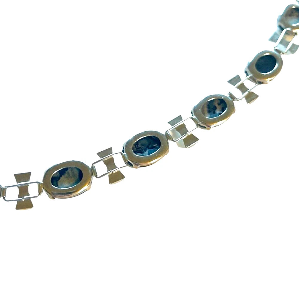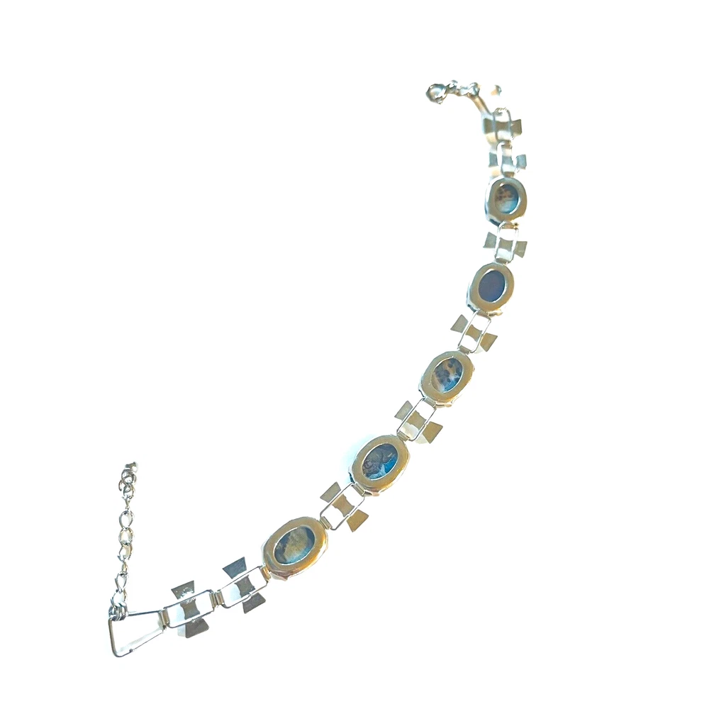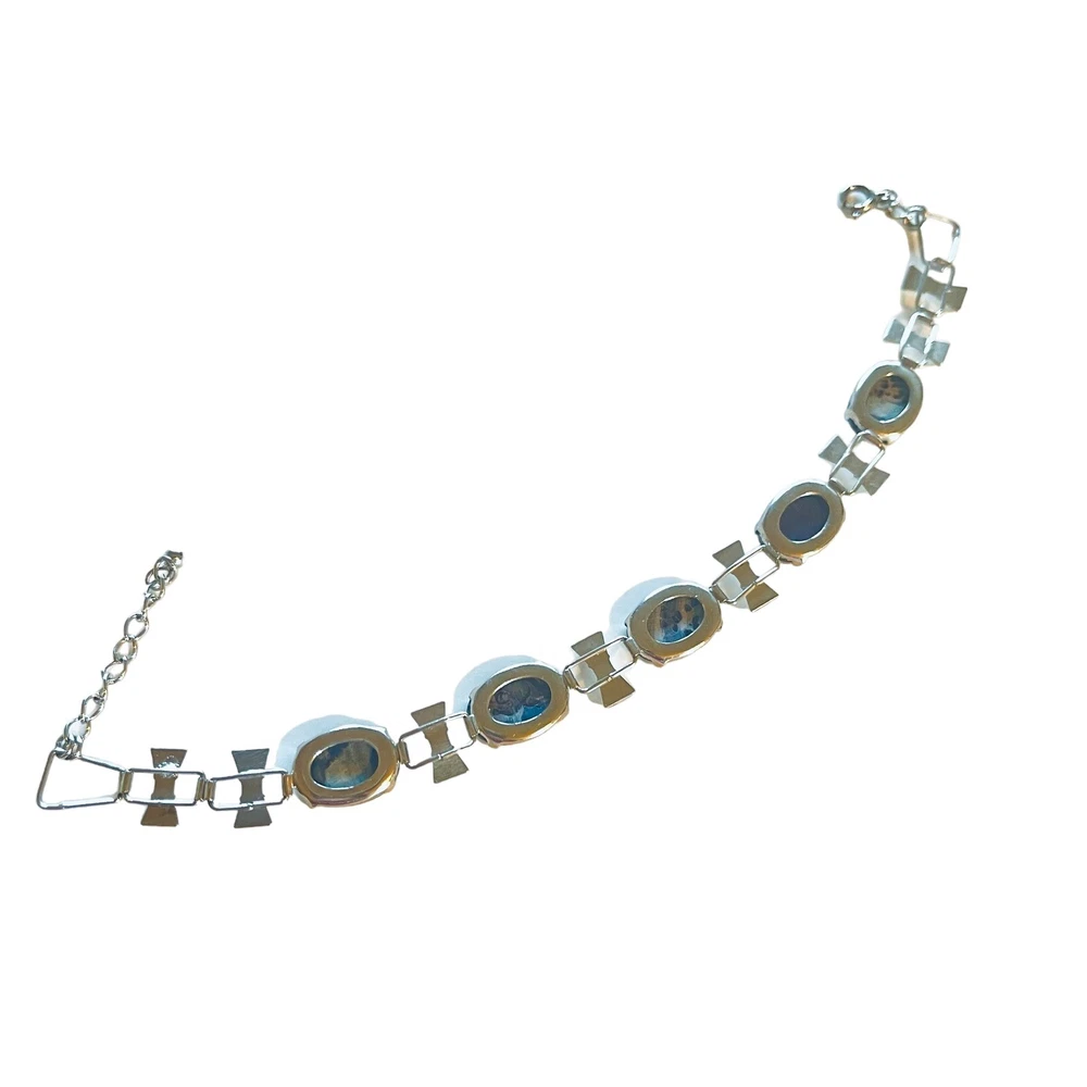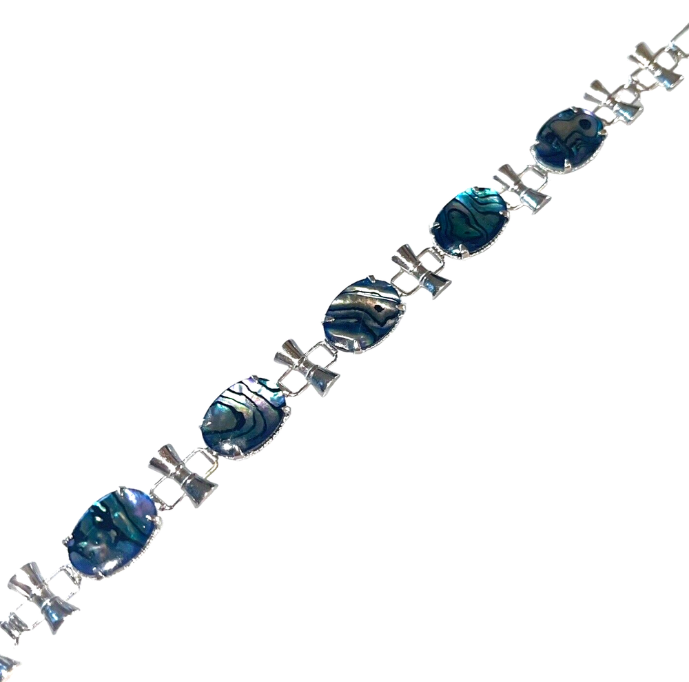 Cool women's silver tone link bracelet. Bracelet features 5 beautiful prong set abalone cabochons. The length is approximately 7.5 inches and it has a 1 inch extension chain and a spring ring clasp. Very pretty bracelet with a unique design. Comes boxed as shown in photos and would make a nice gift. Bracelet is in very good condition and shows no prior wear. See photos. Zoom for more detail and assessment of condition. Feel free to contact me with questions. I can combine shipping and will provide a combined shipping quote upon request. I do my best to be accurate and transparent in the description and photos provided. To preserve the overall condition of each piece, I do not polish or extensively clean items prior to photographing or shipping. Sold as is. All sales are final. Returns are not accepted, however your satisfaction is important to me. Please reach out if there is a problem with your purchase. Thanks! PassionatelyCollected ~I passionately collect things....