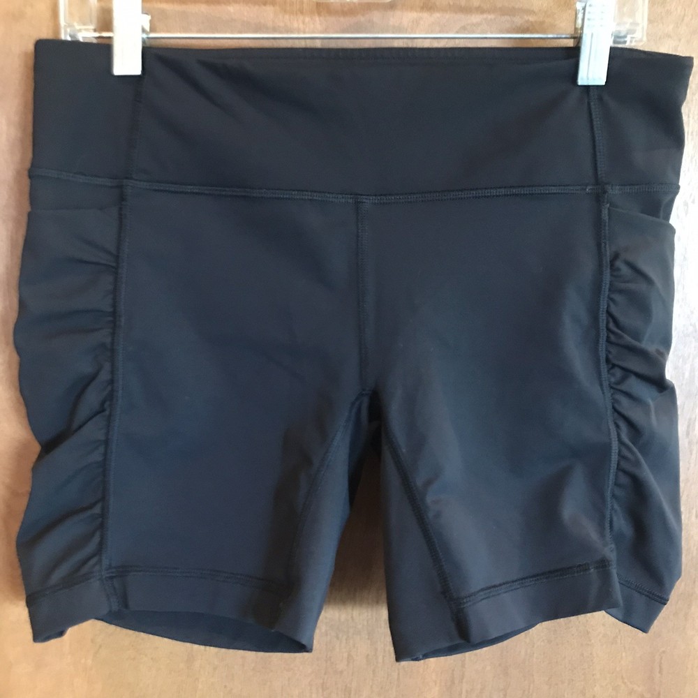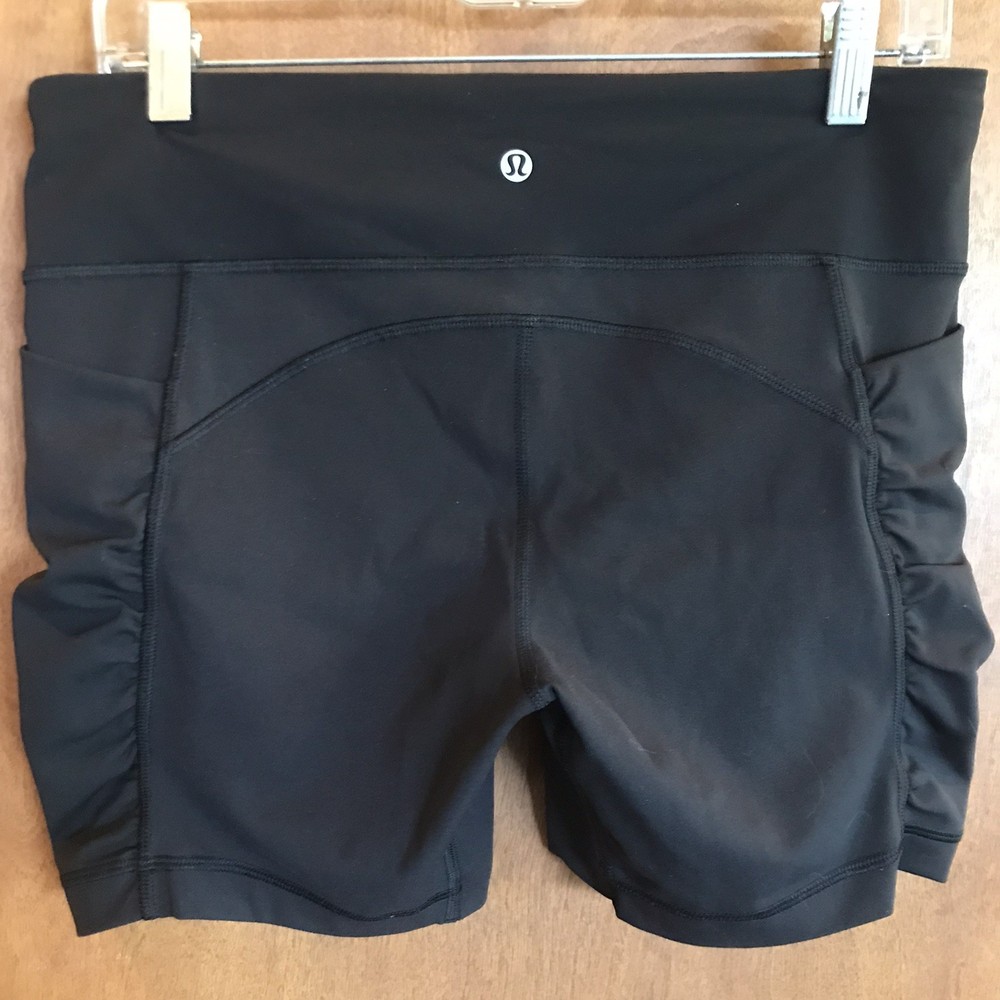 Women's Size 10 Lululemon Ruched Black Biker Shorts with Side Pockets 6.5" Speed Track