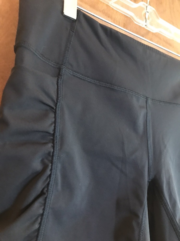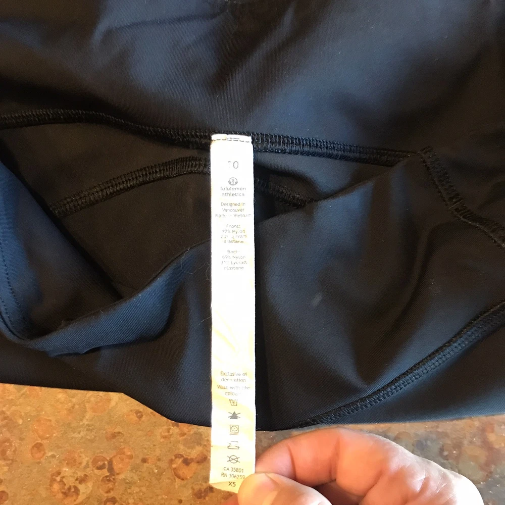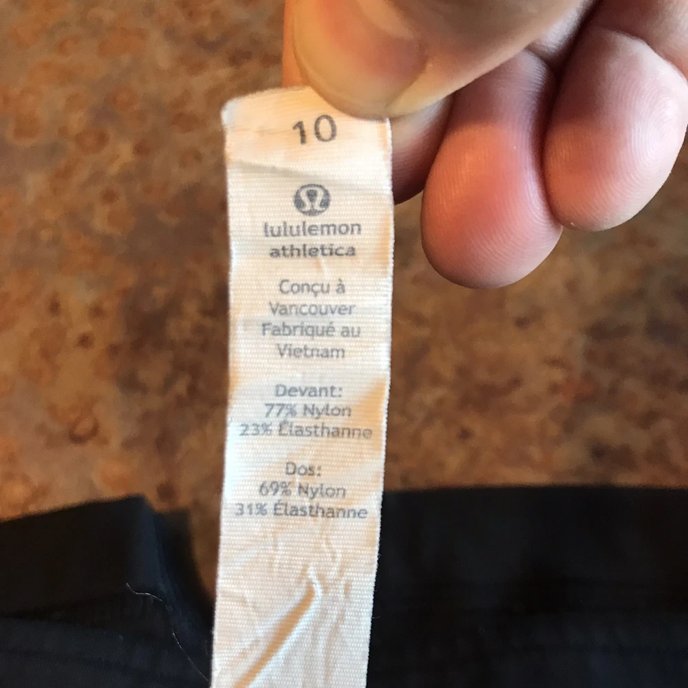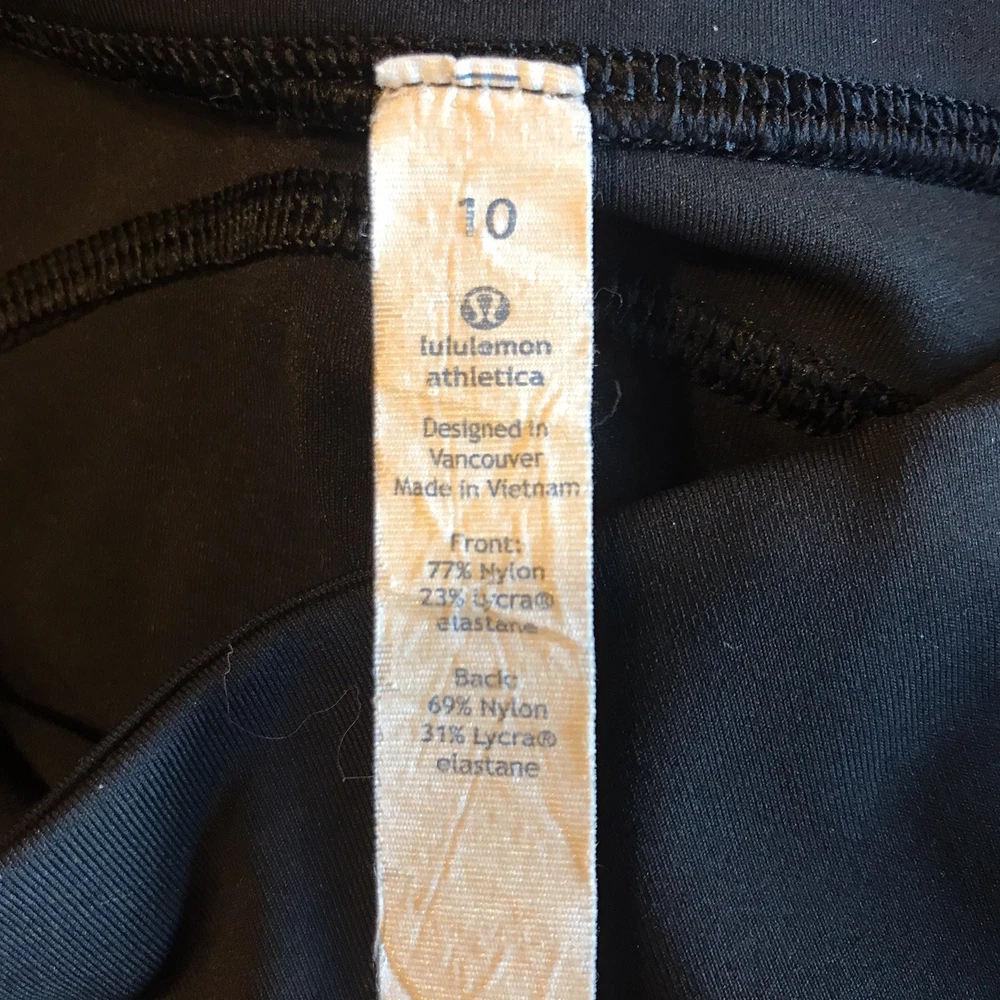 Hard to find. Women’s size 10. Lululemon Athletica. Nylon Lycra blend. Black in color. 2 side pockets which are perfect to hold keys or phone. Continuous drawstring. Pull on. Inseam is 6.5”. Waist measures 15 3/4” laying flat. Comes from a clean, smoke free home.