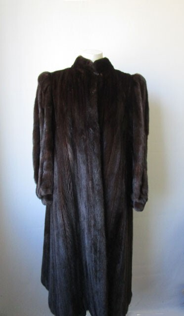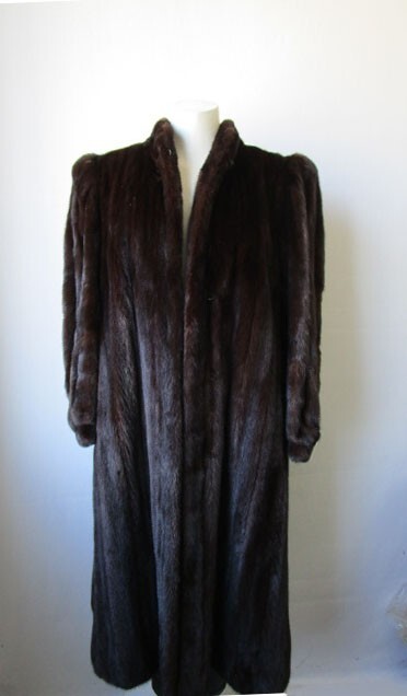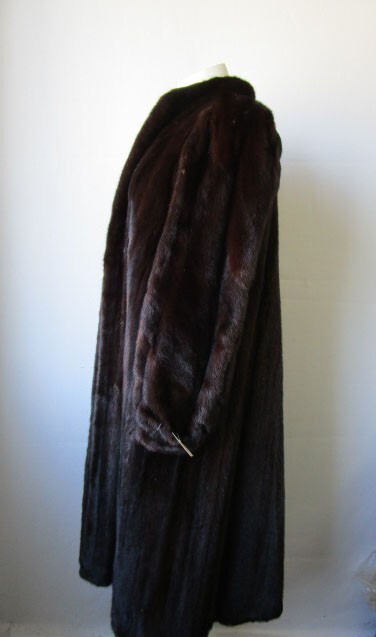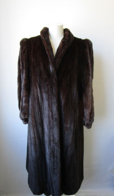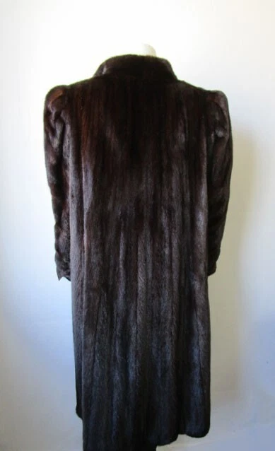 I tem Description: S uperbly soft and luxurious Canadian mink fur coat for women. Full top quality Canadian FULL mink fur pelts, warm and cozy shawl style mink fur collar, front furrier closures , side slit pockets and satin lining complete the look of the this beautiful fur coat. Fur and lining in MINT PLUS condition. Cleaned and glazed. SIZE: 10/12 Chest all around closed 45" SLEEVES: 27.5" Adjustments Free of Charge! LENGTH: 42"