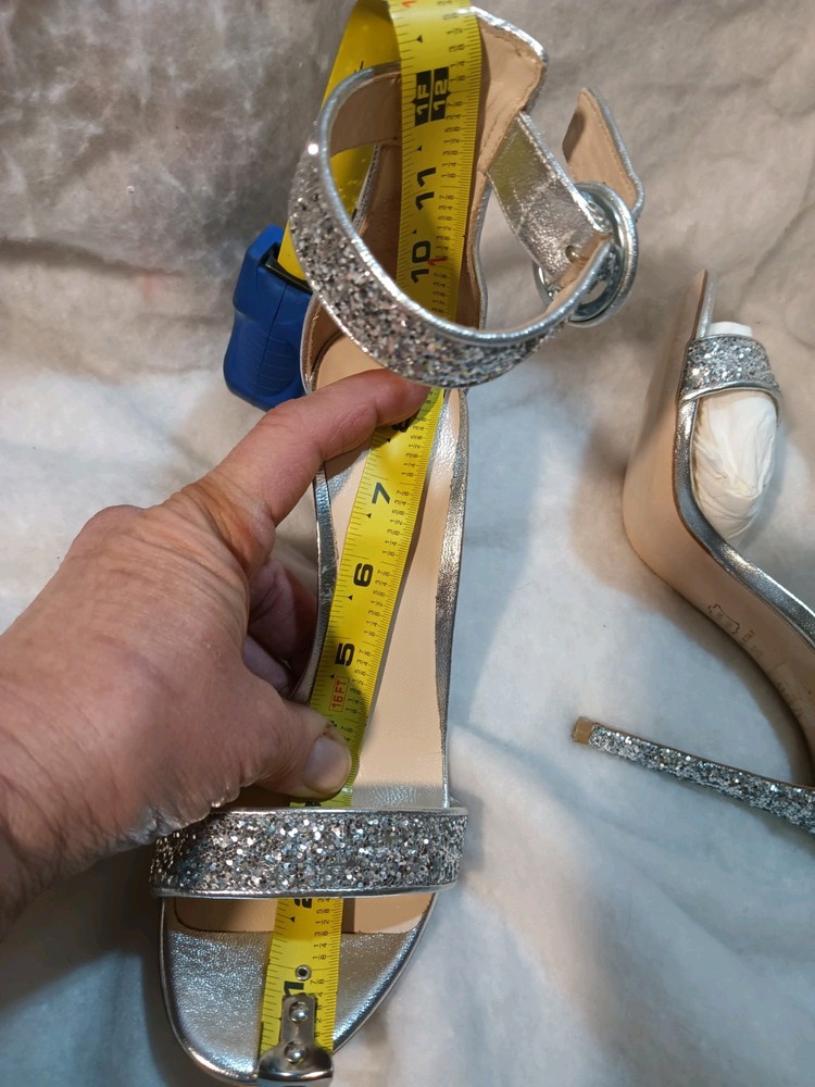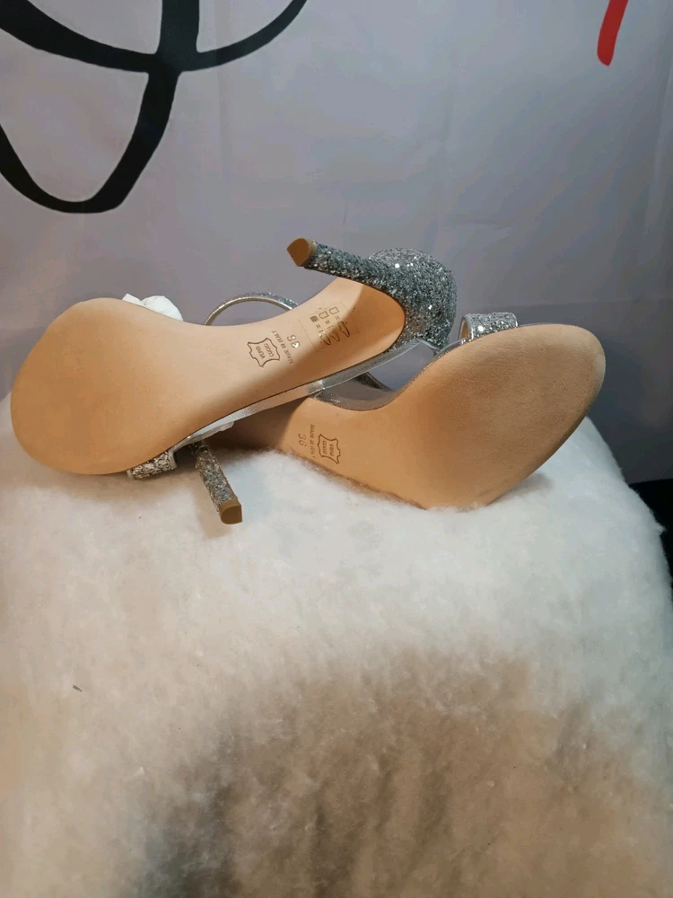 Elevate your style with these stunning Lerre glitter heels. These high stiletto heels feature an almond toe and slip-on closure for easy wear. The ankle strap adds a touch of sophistication, making them perfect for formal occasions, parties, or even weddings. The silver color and glittery finish make them the perfect statement piece to complete your look. Made with a leather outsole, these heels are sure to last. Don't miss out on the chance to add these gorgeous heels to your wardrobe.