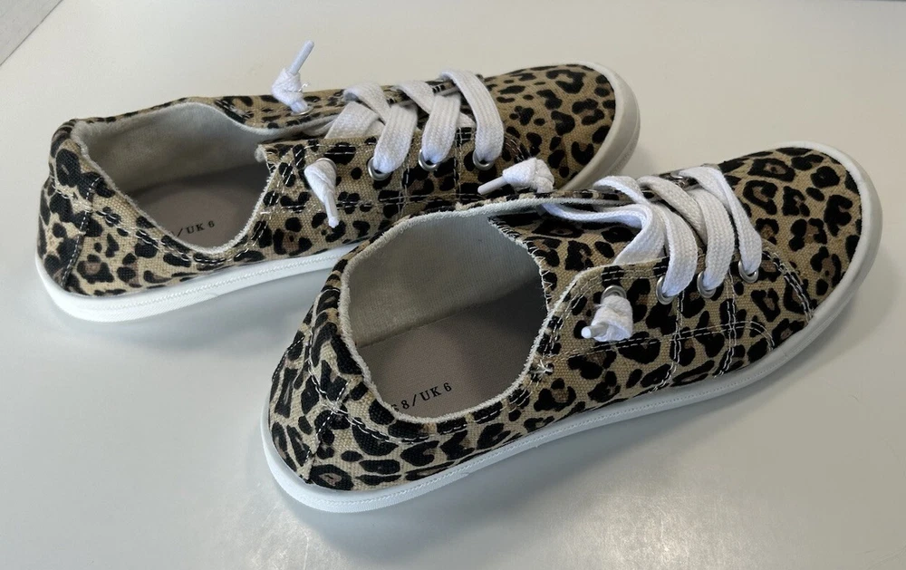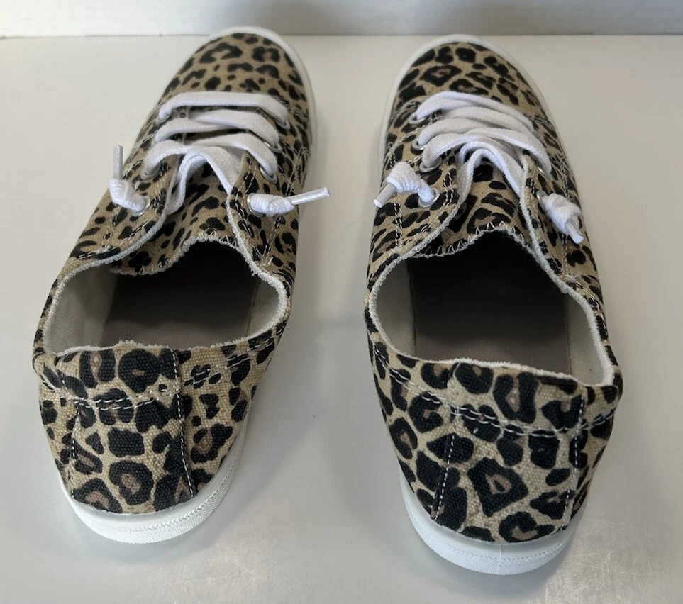 Women's Size 8 Cheetah Print - Slip on - Sneakers Shoes w No Tie Laces Pre-Owned - Please see pictures for details