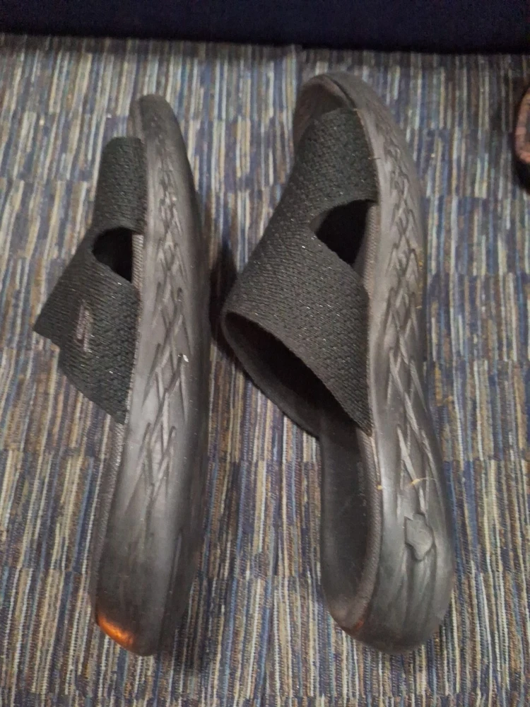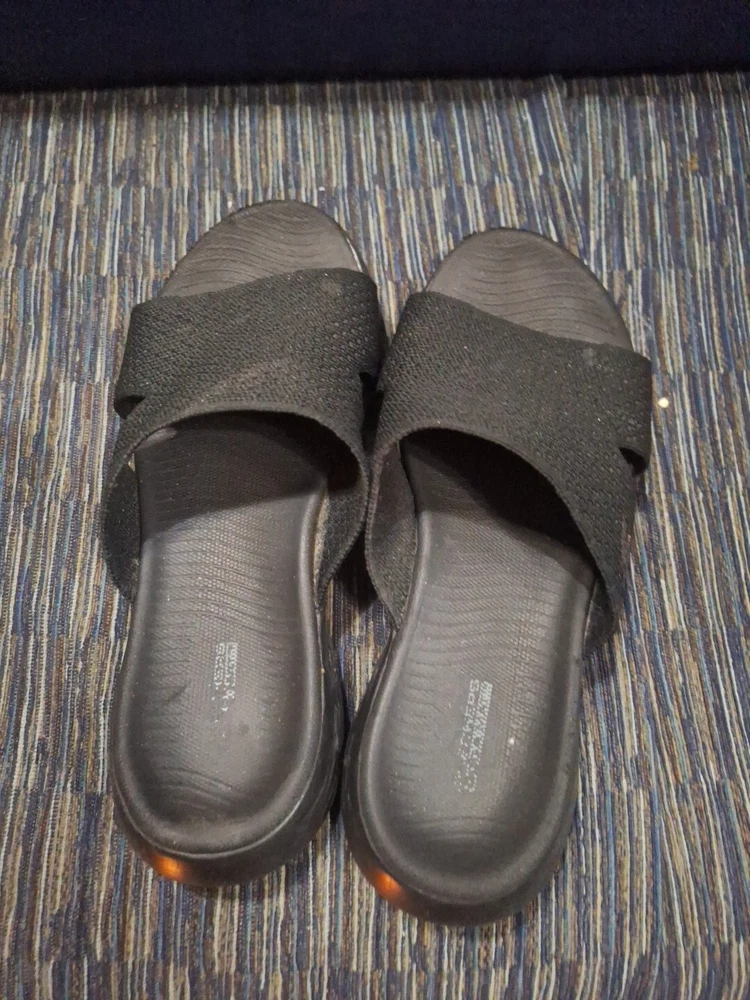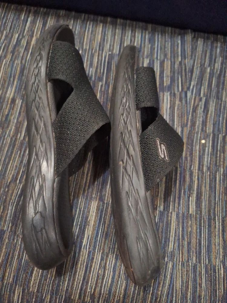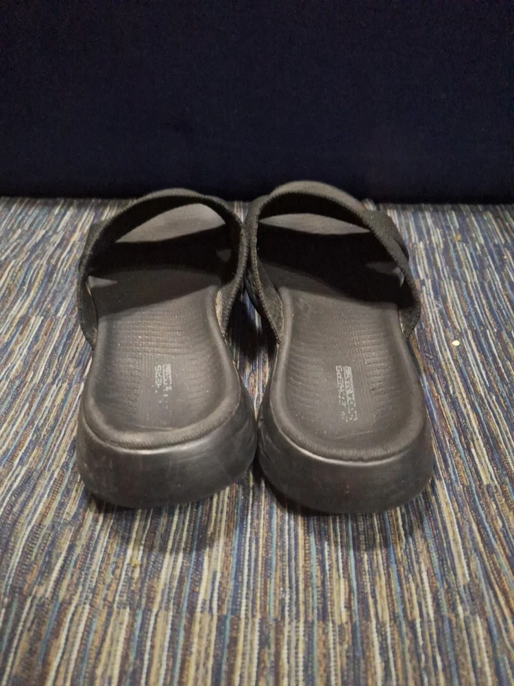 NEW YORK & CO Womens Black Gold-Tone Liz Open Slip On Heeled Sandal 10 M