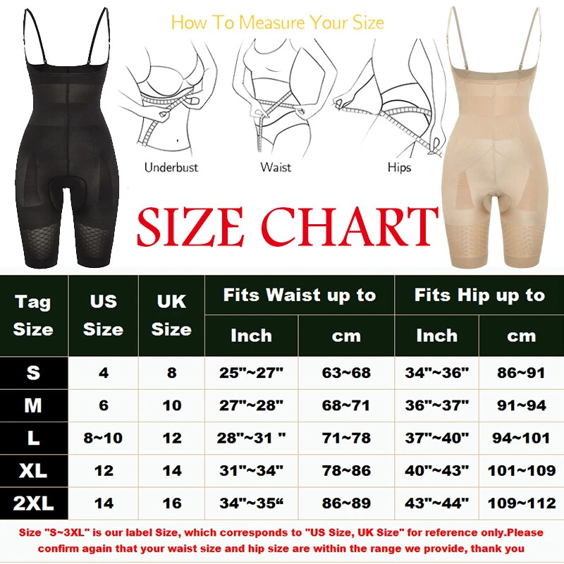 Women Shaperwear Body Shaper Slimming Underwear Fajas Colombianas Lady One Piece Color:Black/Beige Size:S/M/L/XL Material:Nylon65%,Spandex35% Warehouse Location:China,United States SMOOTHING FABRICS :For accelerated weight loss, Fabric Nylon65%,Spandex35% provides maximized firm control and remains breathable, sweat free and moisture wicking to be worn all day long. SEXY LOOK AND COMFORT : Available in Thong styles; removable & adjustable straps, open bust design for easy to wear and take off to pair with your favorite bra for a truly custom fit and the panty with Elastic hole for easy bathroom use. U-SHAPE OPEN BUST BODYSUITS : Special front U-type anti-droop open bust design makes your chest more erect and attractive,effectively firm control armpit and back flabby fat to make your body no lumps or bumps, creat a slimmer hourglass figure. FIRM CONTROL & COMPRESSION : Fajas bodysuit trim waist, compress belly and lift the butt, and with zipper nner with hooks design for specifically shape the midsection with targeted double tummy control to support and compression your waist. APPLICABLE CROWD & OCCASIONS : Fajas Colombianas Body Shaper is suitable for Postpartum Recovery,Weight loss, Wedding, Club, Party, Work, Dating, Christmas, Festival, Holiday.Working great with everything from form-fitting tops, slim cut jeans, skirts, shorts etc. Color:Black/Beige Size:S/M/L/XL Material:Nylon65%,Spandex35% Warehouse Location:China,United States SMOOTHING FABRICS :For accelerated weight loss, Fabric Nylon65%,Spandex35% provides maximized firm control and remains breathable, sweat free and moisture wicking to be worn all day long. SEXY LOOK AND COMFORT : Available in Thong styles; removable & adjustable straps, open bust design for easy to wear and take off to pair with your favorite bra for a truly custom fit and the panty with Elastic hole for easy bathroom use. U-SHAPE OPEN BUST BODYSUITS : Special front U-type anti-droop open bust design makes your chest more erect and attractive,effectively firm control armpit and back flabby fat to make your body no lumps or bumps, creat a slimmer hourglass figure. FIRM CONTROL & COMPRESSION : Fajas bodysuit trim waist, compress belly and lift the butt, and with zipper nner with hooks design for specifically shape the midsection with targeted double tummy control to support and compression your waist. APPLICABLE CROWD & OCCASIONS : Fajas Colombianas Body Shaper is suitable for Postpartum Recovery,Weight loss, Wedding, Club, Party, Work, Dating, Christmas, Festival, Holiday.Working great with everything from form-fitting tops, slim cut jeans, skirts, shorts etc.
