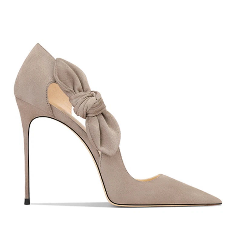 Women's Slip-On Stiletto Pumps with Pointed Toe & Faux Suede Bowknots