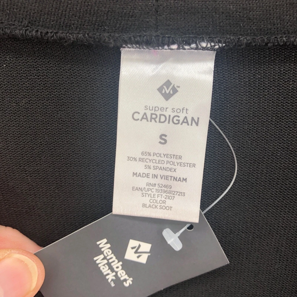 Members Mark Sweater Womens Small Black Super Soft Cardigan Open Knit Pocket NWT Open Front 2 Pockets Please see photos for measurements (in inches). We suggest comparing them to something you currently own to ensure a perfect fit. Please feel free to message us with any questions not answered in the listing. Smoke-Free, Pet Friendly Super Fast Shipping: We ship out the next business day! Combined shipping available.