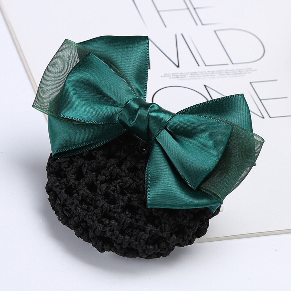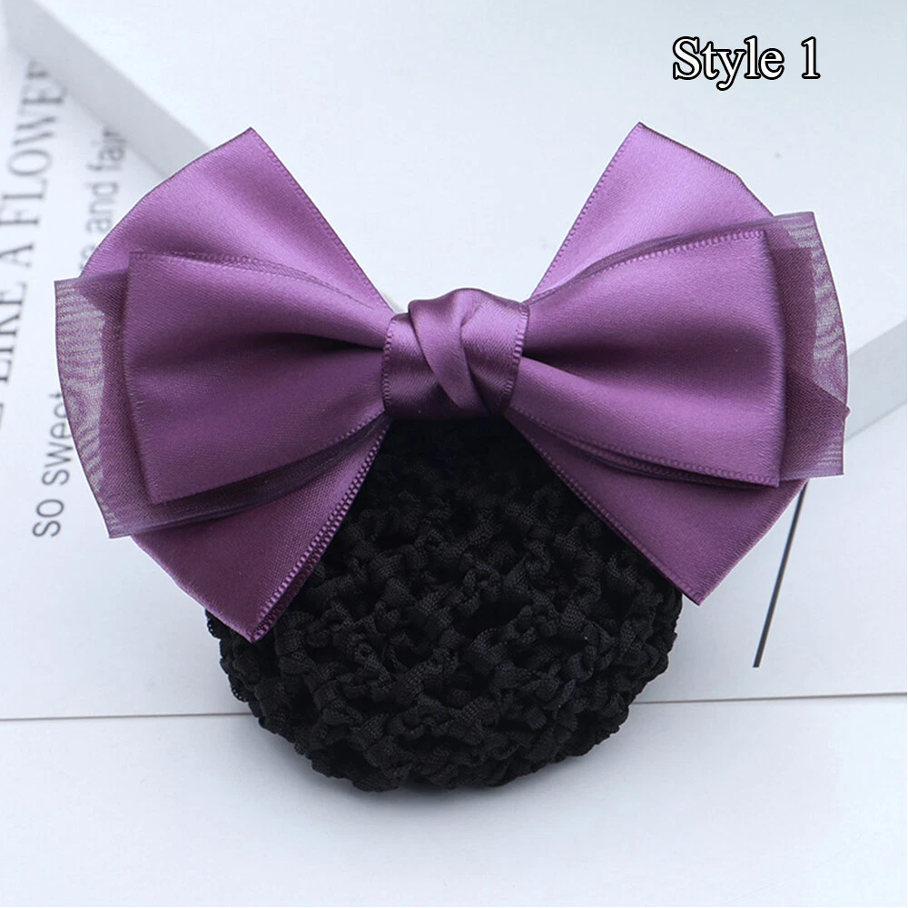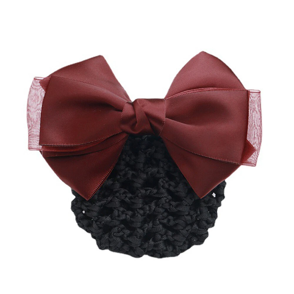 Womens Snood Bun Cover Hair Net with Bow Knot Clip for Office Styling