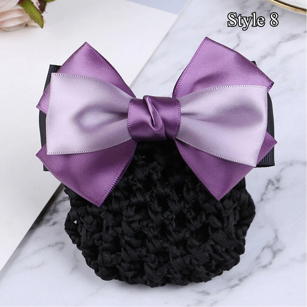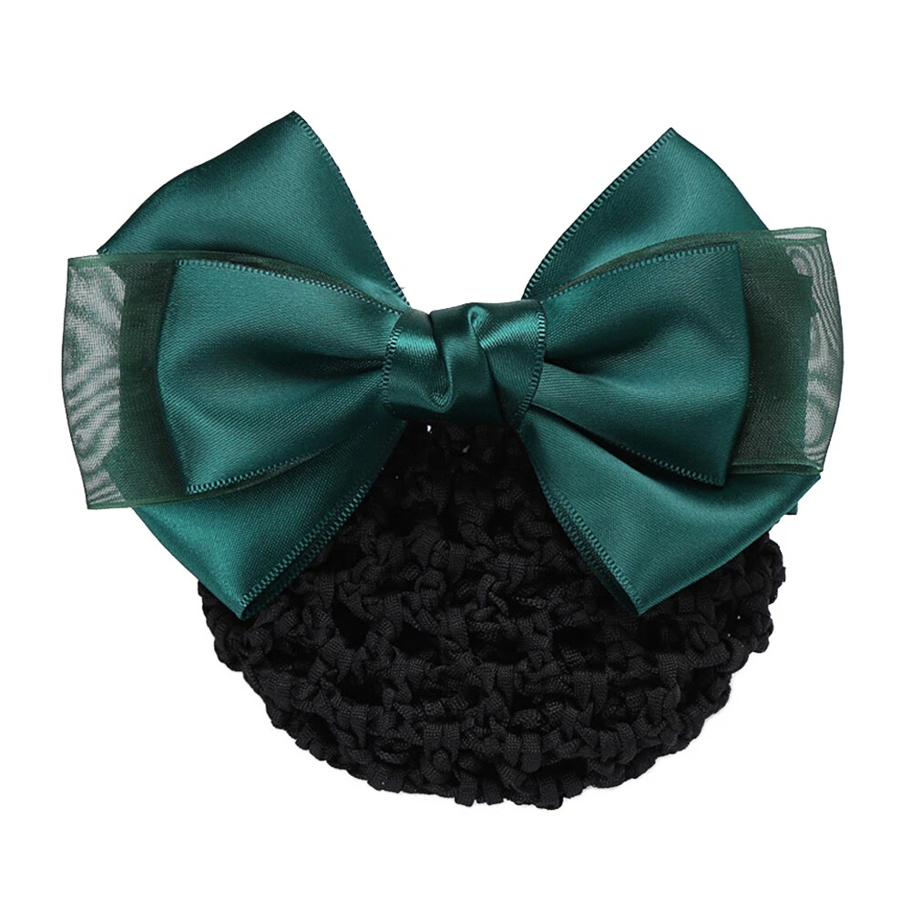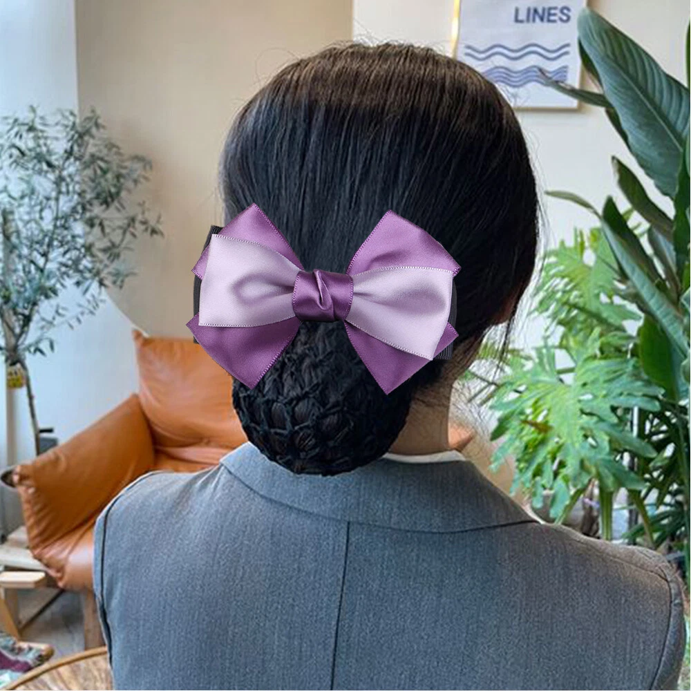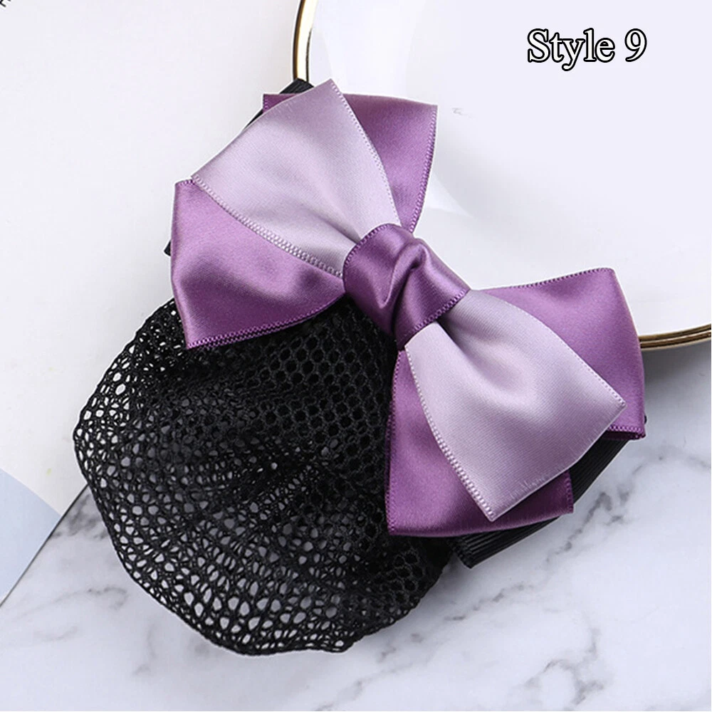 Womens Snood Bun Cover Hair Net with Bow Knot Clip for Office Styling