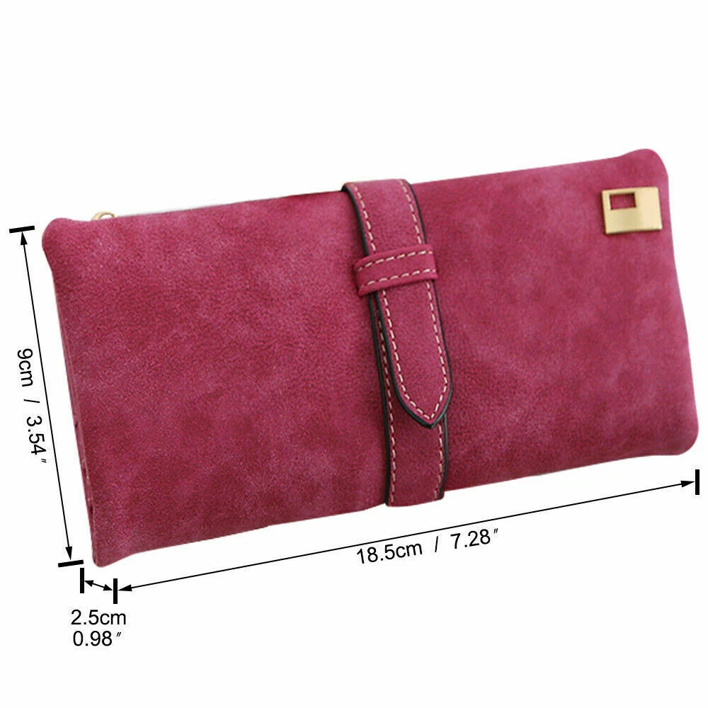 100% Brand New And High quality A fashionable and durable wallet Designed to hold cash, cards, and other little things You can simply hold it on hand or put it in a bag Enough to fit for your various dr ess Applicable gift-giving occasions: Business Gifts, Holiday, Halloween, Birthday, Mother's Day, Wedding, Christmas Large capacity Outer Material: Nubuck Leather Material: Synthetic Leather Color: Rose Red,Pink,Brown,Dark Blue,Gray,Purple,Green Main Material PU Approx Size: 18*9*2.cm(L*W) Package contents: 1 x Women Long Wallet Without Box