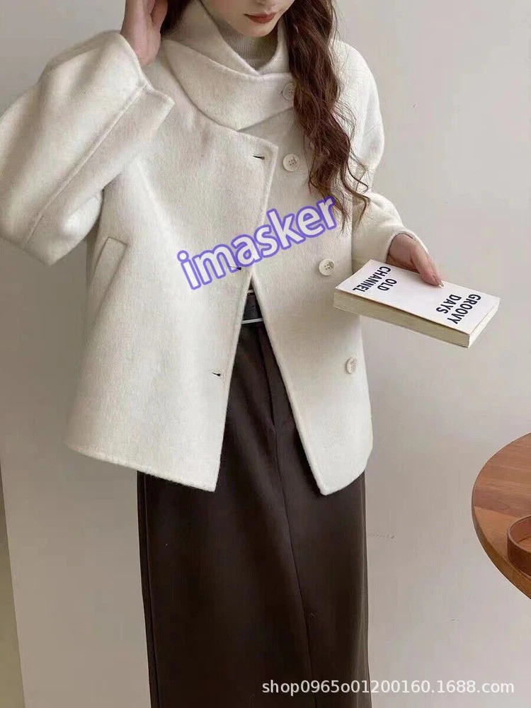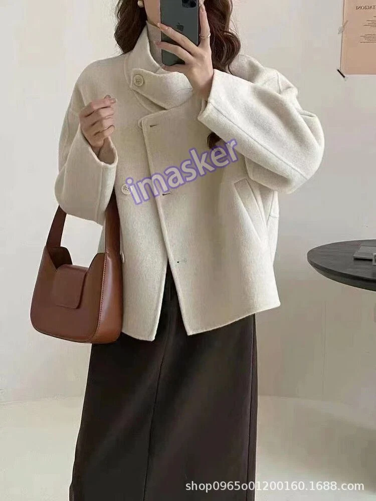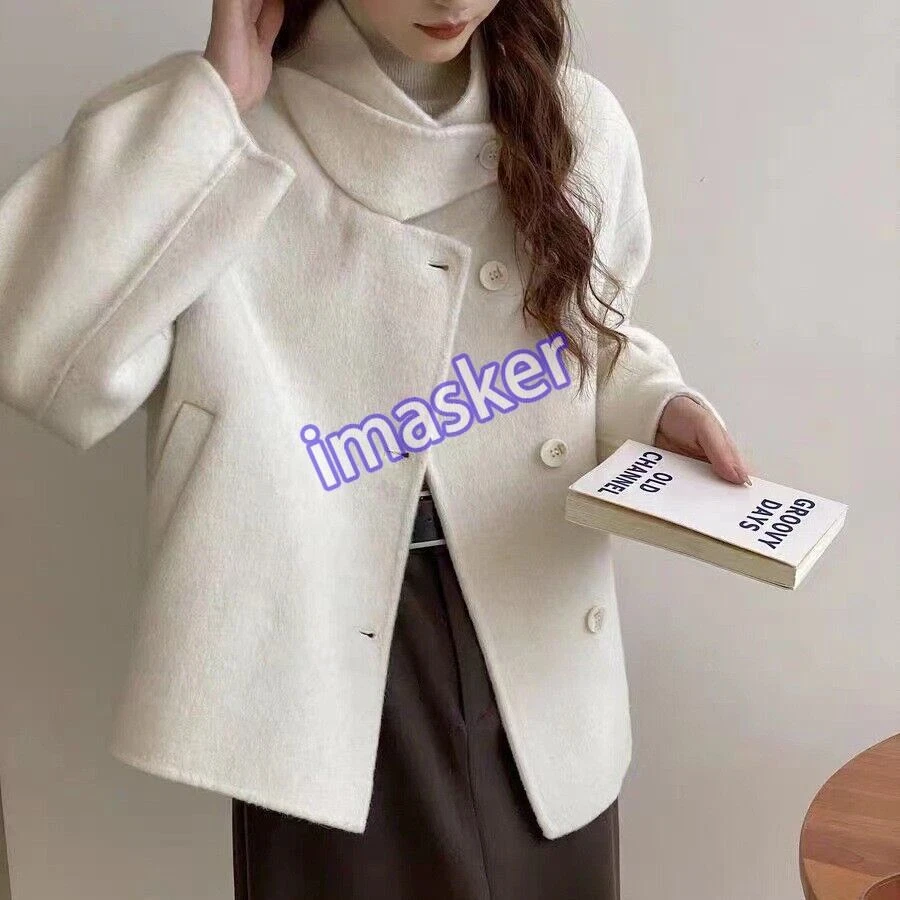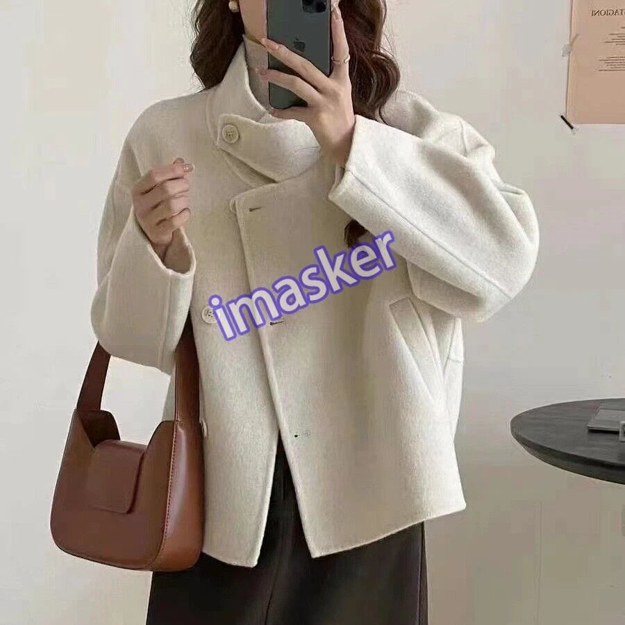 Womens Stand Collar Double-sided 100% Wool Short Trench Coats Jackets Sz