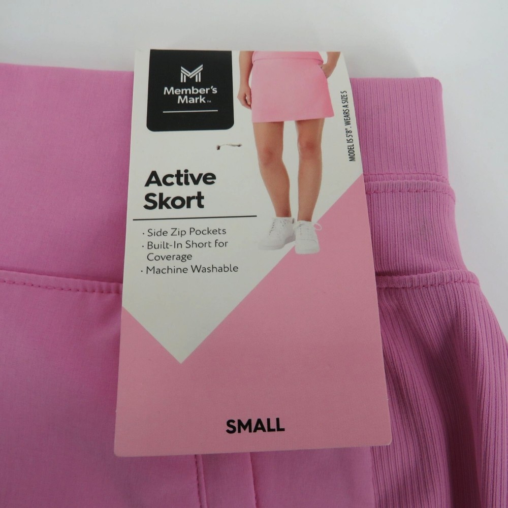 Features: • Brand: Members Mark • Color: Pink • Closure: Pull On • Side Zip Pockets • Built In Shorts For Coverage • Stretch Material • Lightweight - Breathable • Ribbed Waist • Material: 90% Polyester • Material: 10% Spandex • Pattern: Solid • Style: Skort • Machine Wash • Made in Vietnam Size: Womens S Condition: New With Tags Bin: 3353 - Yellow D