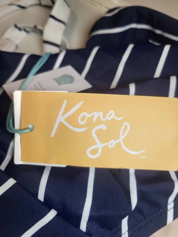$ 6.34Kona Sol Tropical Print Long Sleeve One Piece Swimsuit Black NWT Sz L