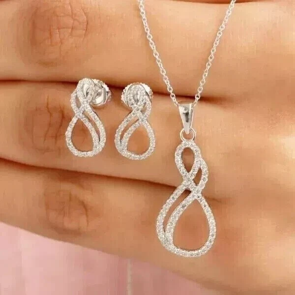 Women's Stunning Jewelry Set 2Ct Round Simulated Diamond 14K White Gold Plated