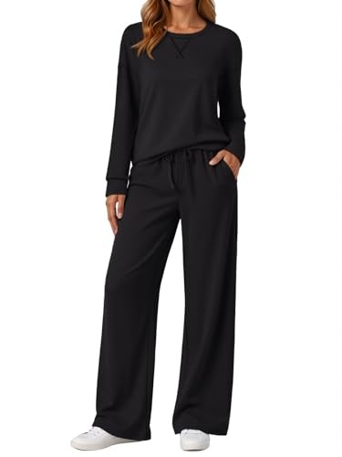 Womens Sweatsuits 2 Piece Sets Travel Outfits 2025 Fall Matching Medium Black