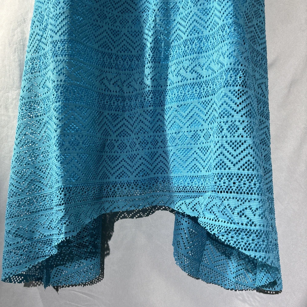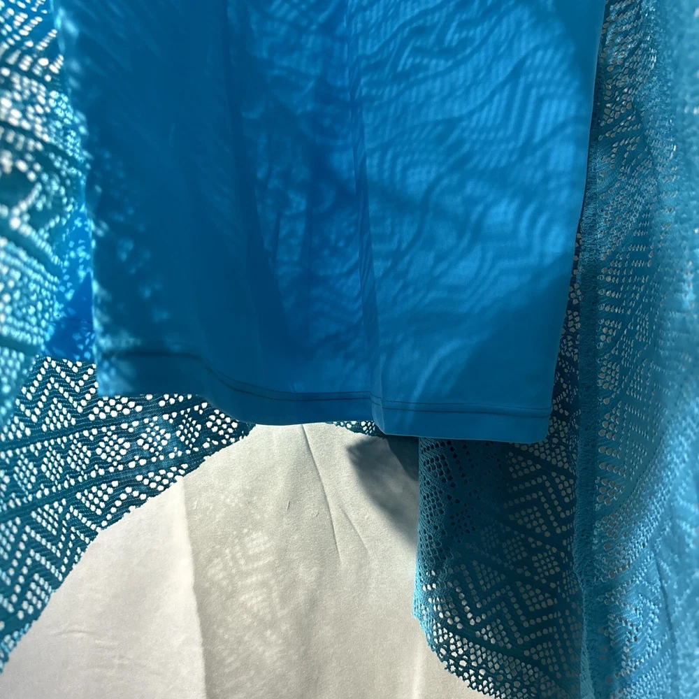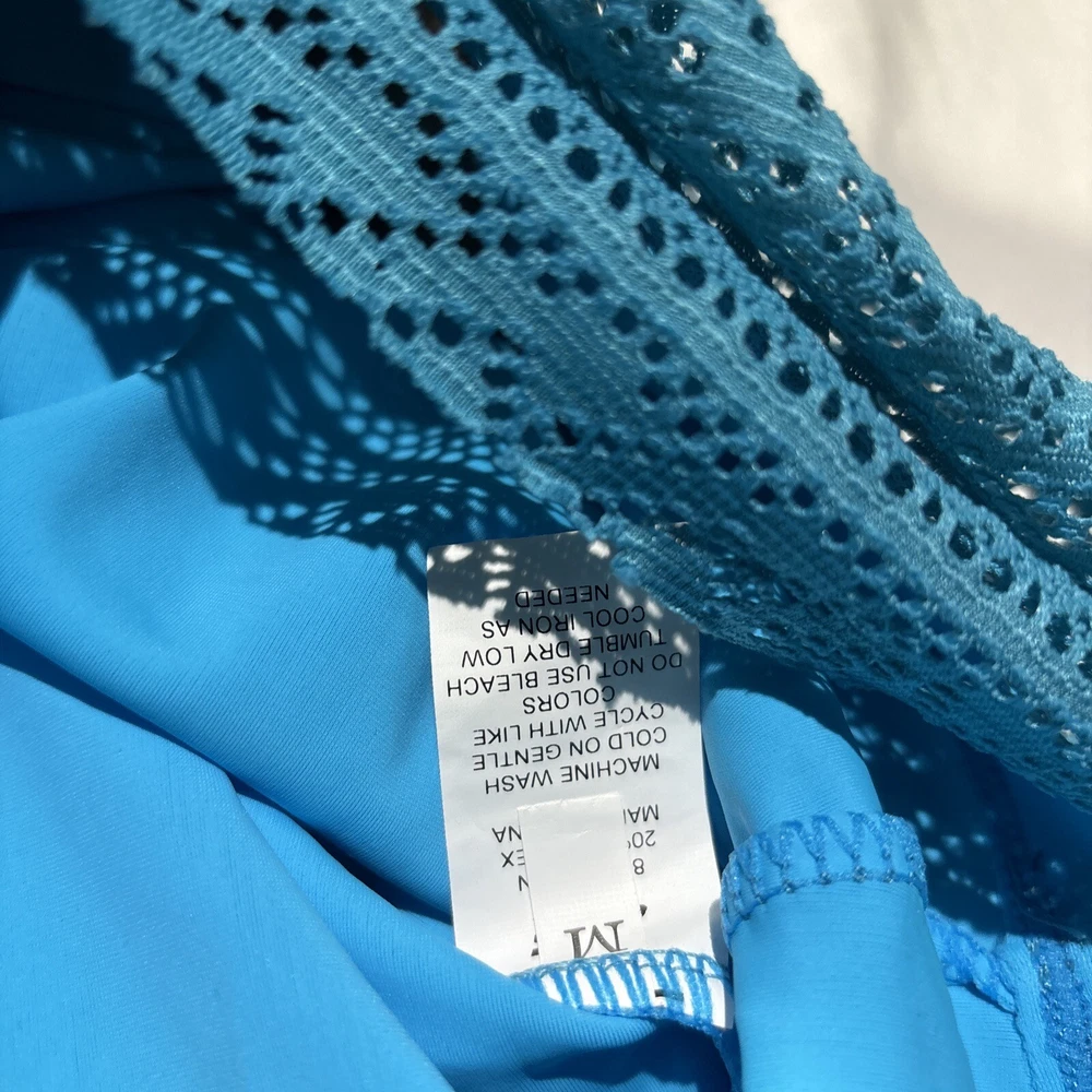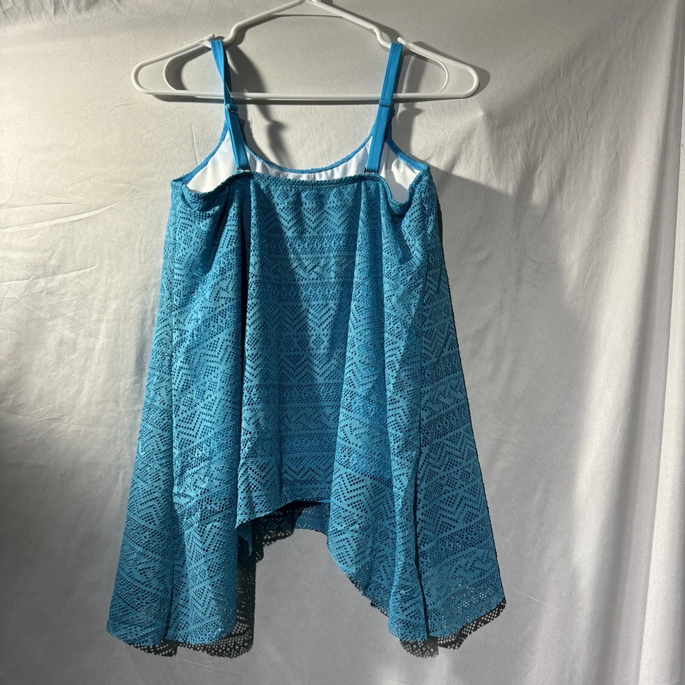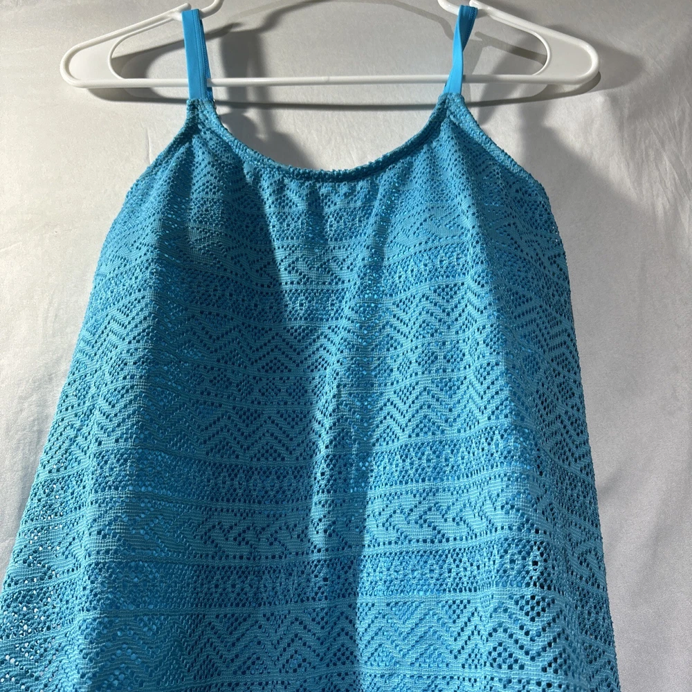 Womens Tankini Top Blue Knit Bra Lined Spaghetti Strap Back Mesh. Shipped with USPS Ground Advantage.