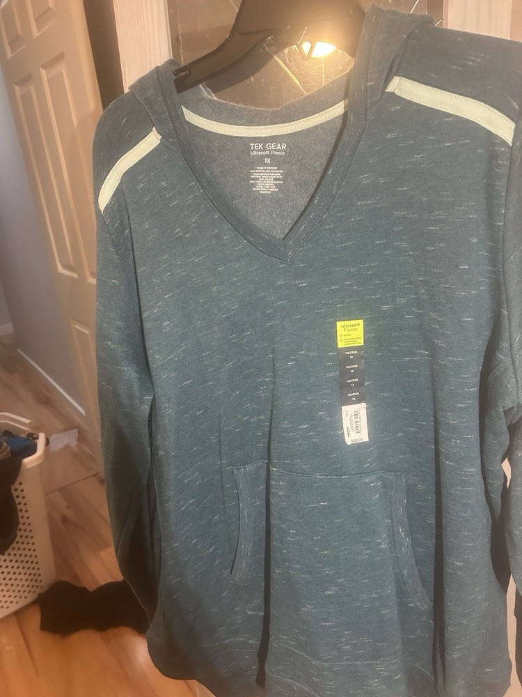 This Women's Teal Tek Gear Pull Over Fleece Sweater in size 1X is a stylish and comfortable option for plus-sized women. Made from a blend of polyester and cotton, this sweater features a solid teal color with a pullover closure and long sleeves. The fleece fabric type provides warmth and softness, making it perfect for activewear in the winter, fall, or spring seasons. Easy to care for with machine washable instructions, this sweater is an essential addition to any wardrobe for those looking for a trendy and practical garment.