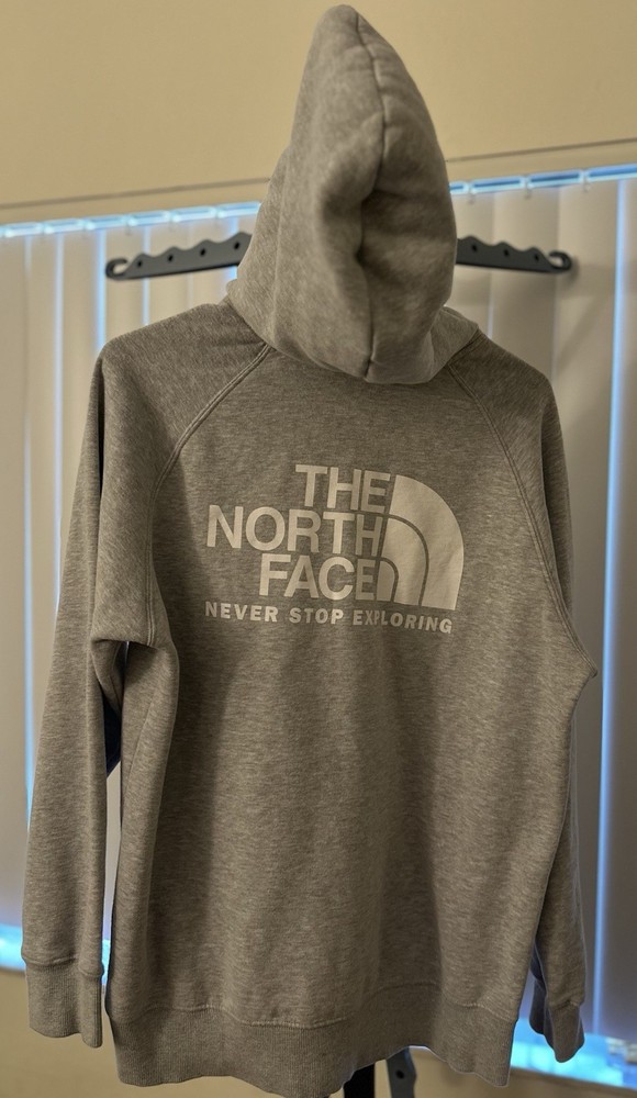 This Women's The North Face Hooded Sweatshirt in size L is a stylish and functional activewear piece perfect for outdoor activities or casual everyday wear. The pullover style with a hood makes it practical for keeping warm and comfortable in chilly weather. The gray color adds a versatile touch, while the branded design of The North Face ensures quality and durability. Perfect for active women looking for a reliable sweatshirt that combines style and functionality.