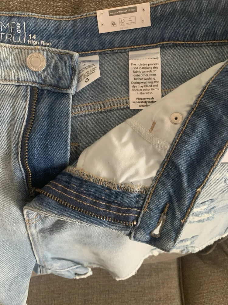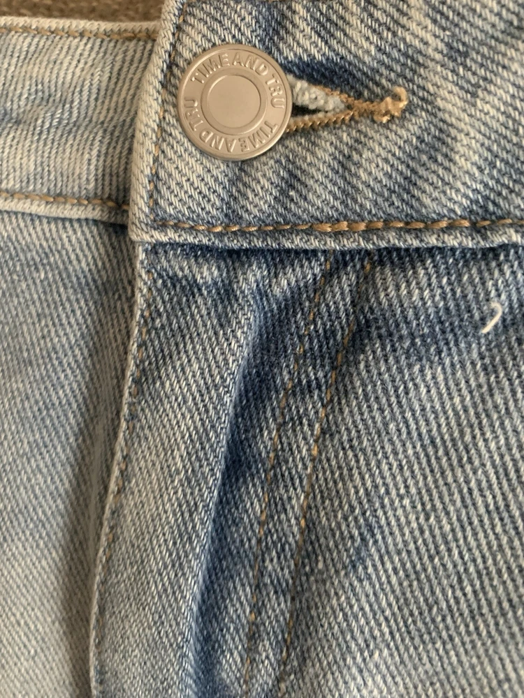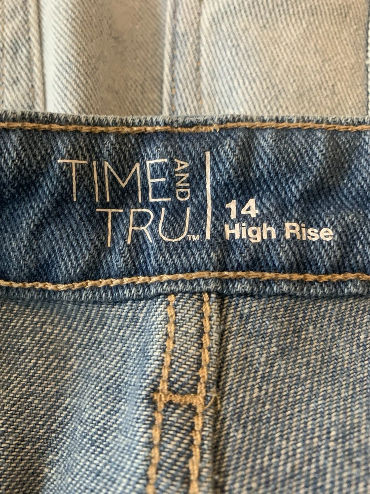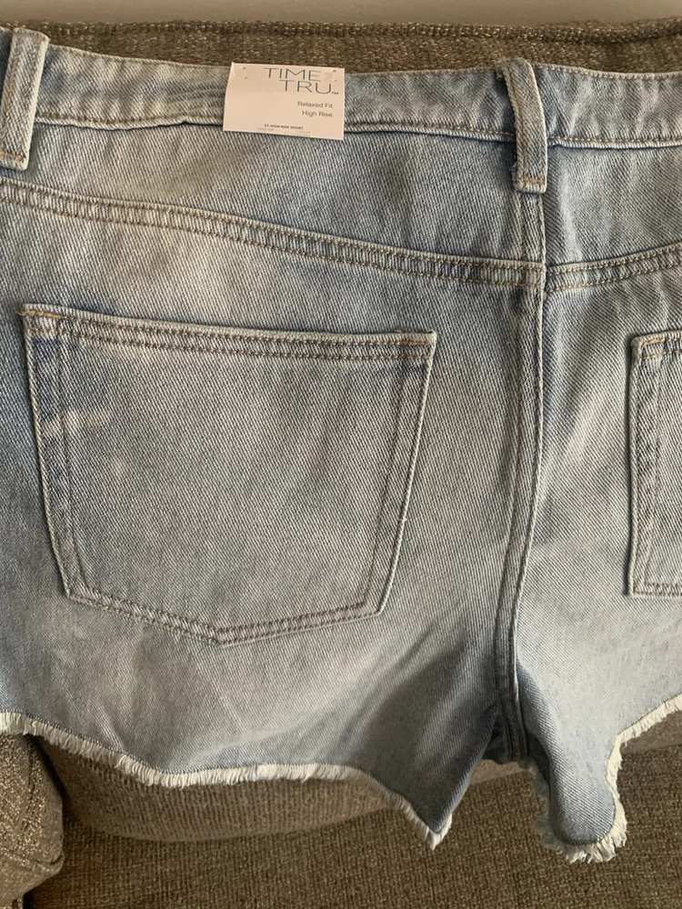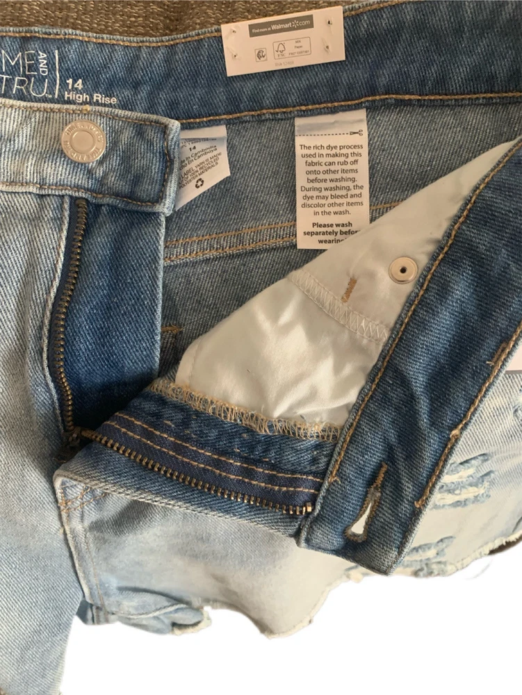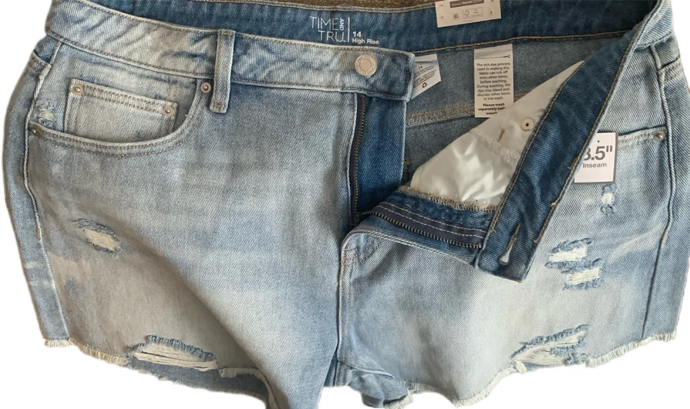 This product is a pair of Women's Time and Tru Relaxed High Rise Shorts in size 14, featuring a distressed look. The brand is Time and Tru, known for its comfortable and casual clothing for women. The fit is described as relaxed, offering a comfortable and easy-to-wear style. Perfect for casual days and relaxed outings. All measurements are approximate with item resting. Waist 17.5” Inseam 3.5” The item is thoroughly washed/cleaned as per the manufacturer's guidelines before shipment. See my other listings for more stuff you didn’t know you needed.