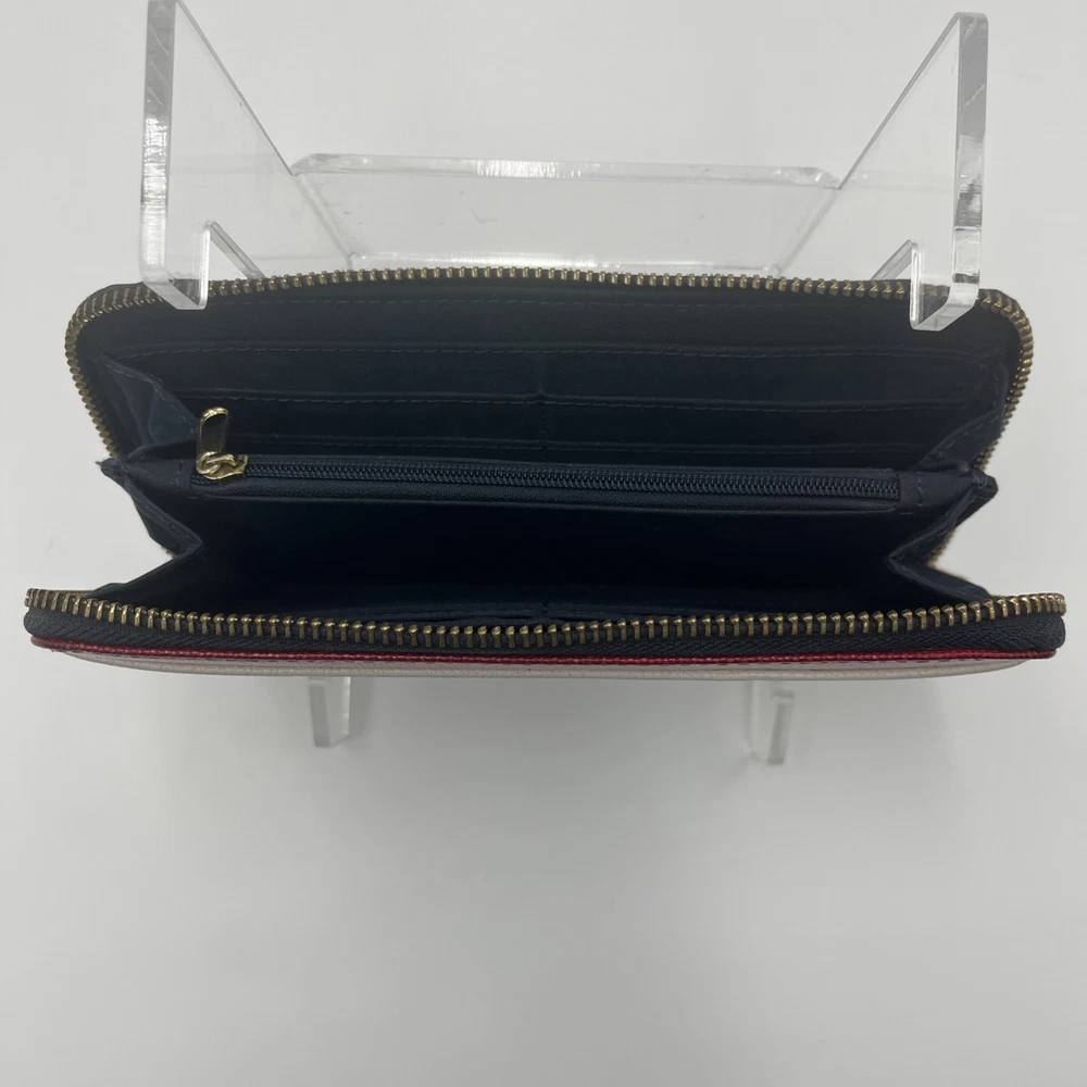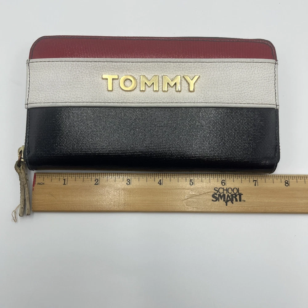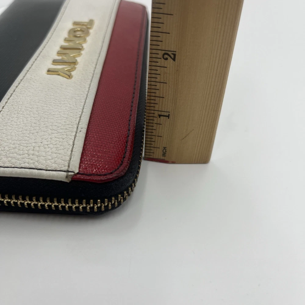 Womens Tommy Hilfiger Striped Logo Zip Wallet Clutch Red White Blue Color Block Very clean. Please note photos for very occasional signs of use. Z