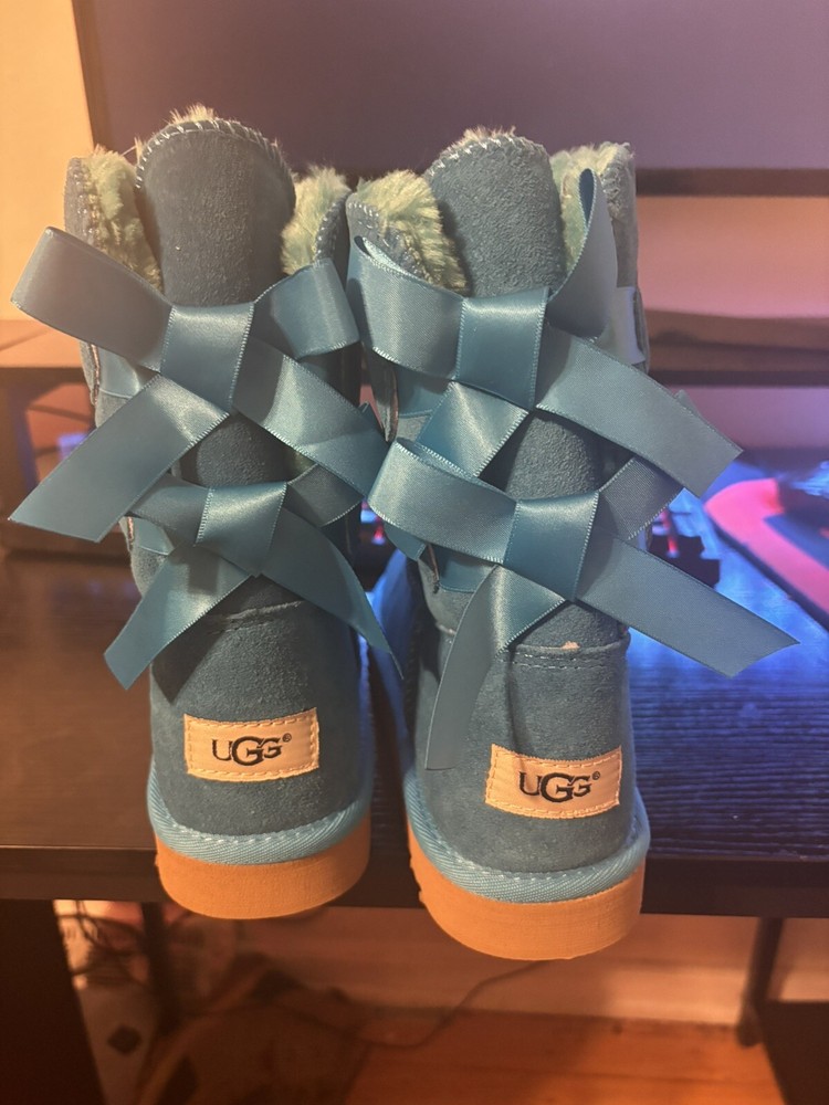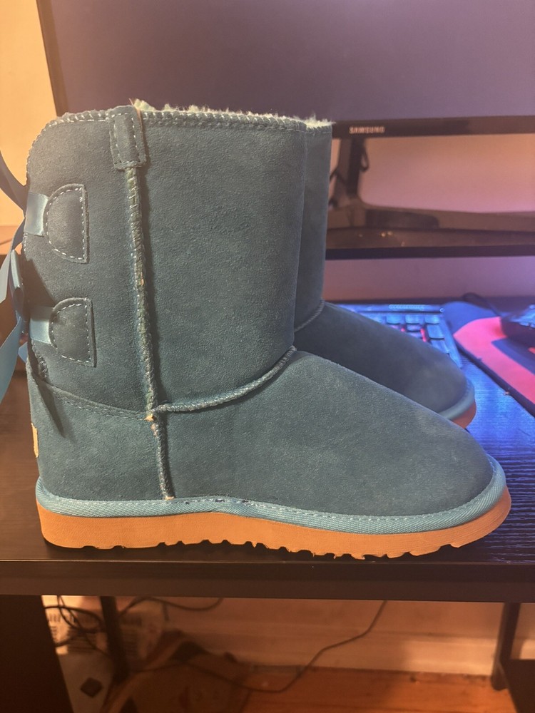 US Shoe Size:9Country/Region of Manufacture:AustraliaProduct Line:Ugg ClassicUpper Material:LeatherBrand:UGGDepartment:WomenType:BootStyle:Snow BootVintage:NoColor:BlueCustomized:No