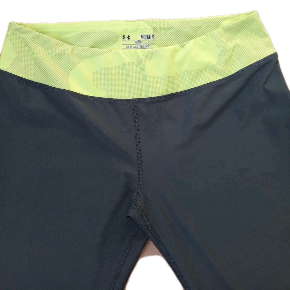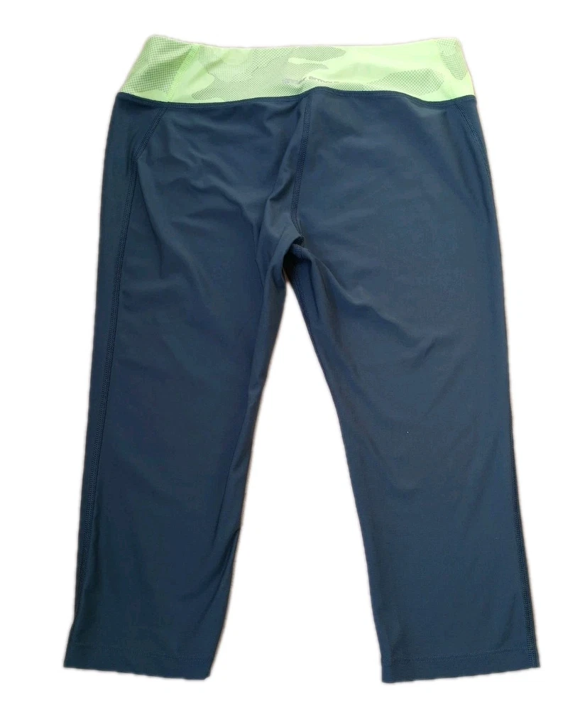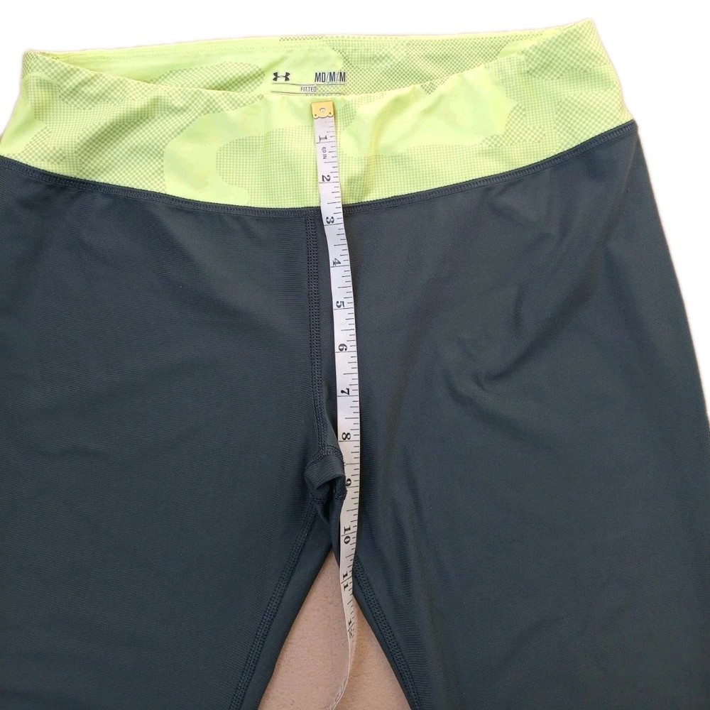 These Women's Under Armour Althetic Capri Leggings in size medium feature a pull-on closure and a mid-rise fit, making them perfect for activewear occasions. Made from stretch fabric with an elastic waist, these leggings offer comfort and flexibility. The solid gray color with green accents and the Under Armour logo make them stylish for various activities such as gym & training, walking, yoga, and running. With a 17-inch inseam and a waist size of M/15 inches, these leggings are machine washable and designed for athletic fit. Perfect for all seasons, these leggings are a versatile addition to any woman's wardrobe.It's pre owned 👈