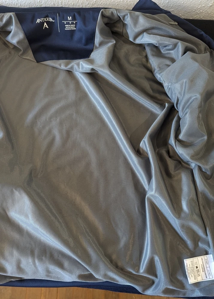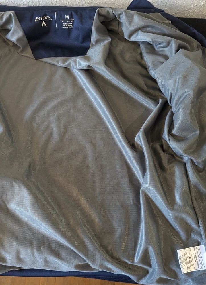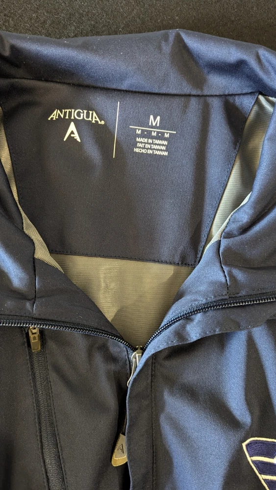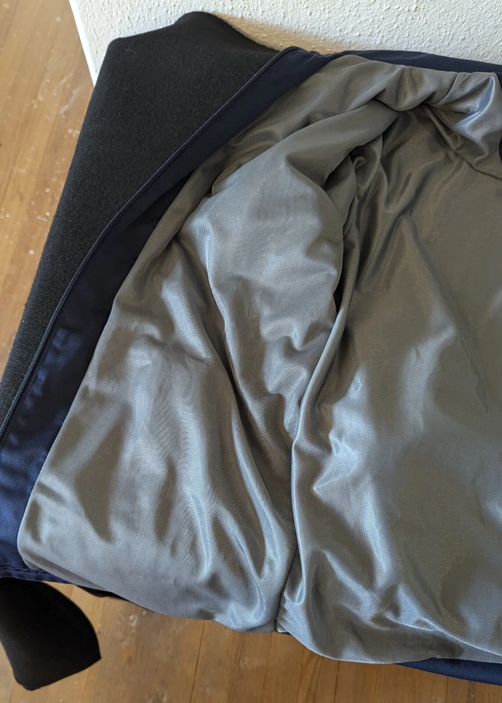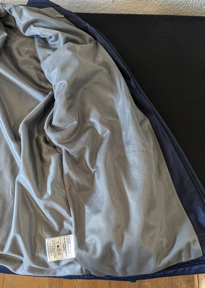 The jacket is in very good condition with no rips tears holes or stains. To be honest, I almost kept it for myself but navy is not my color and I have enough jackets and hoodies to last a while. Now, if it were red, this would be in my coat closet. It has been washed as per eBay policy.