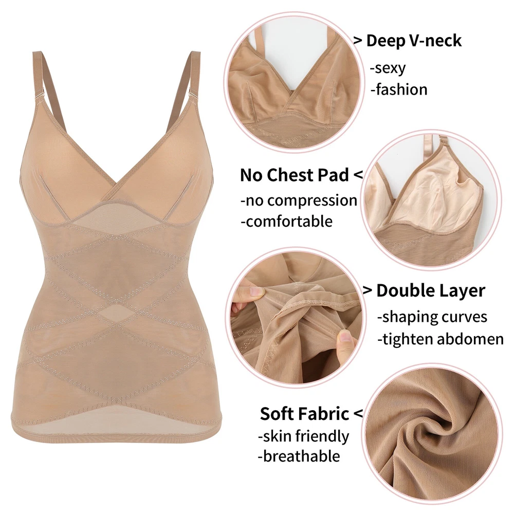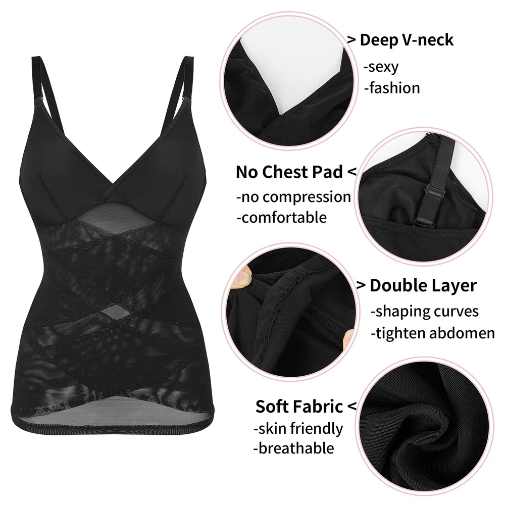 Women's V-Neck Compression Camisole for Tummy Control & Abs Shaping