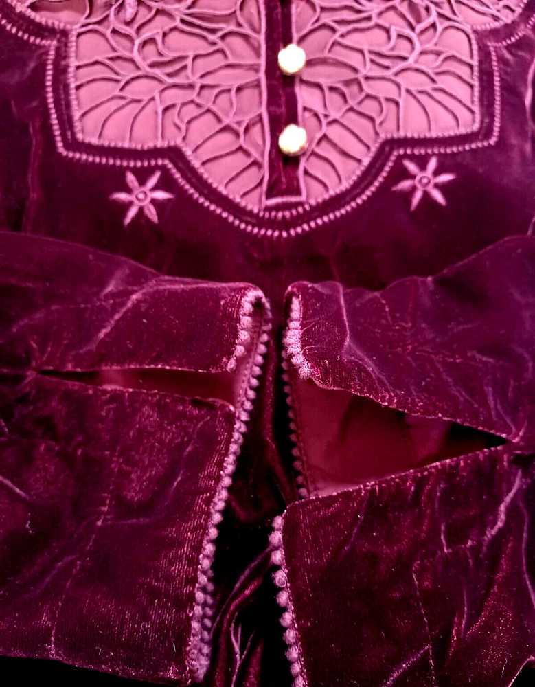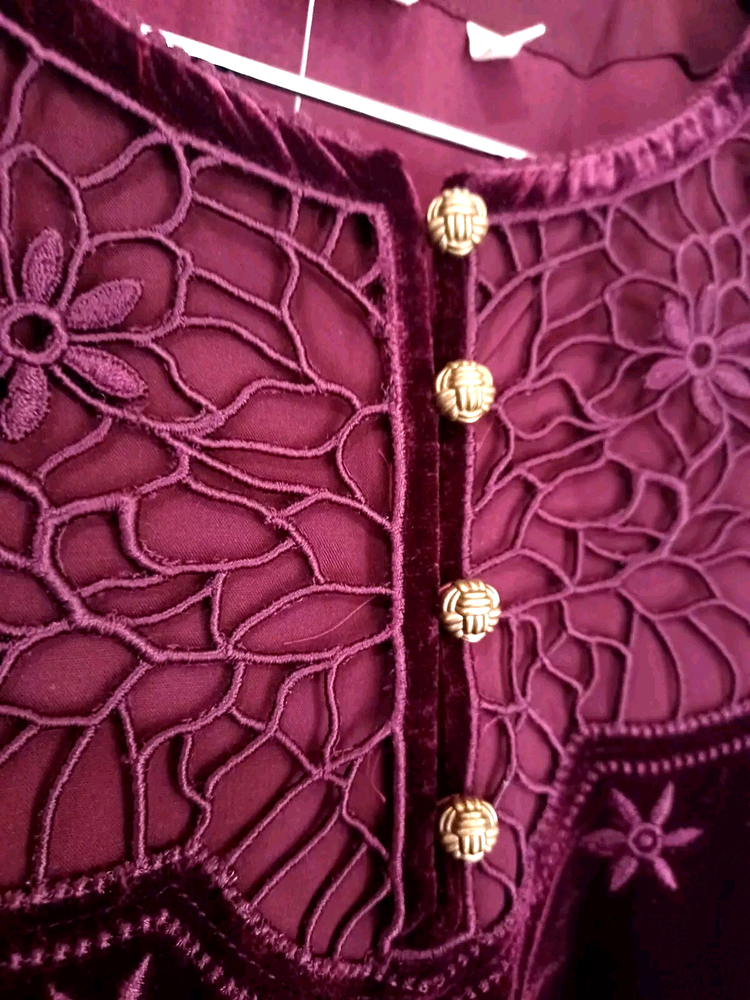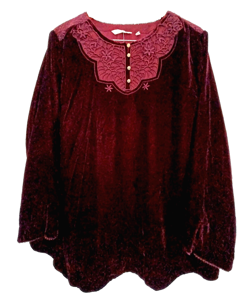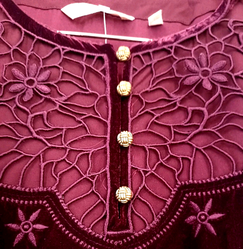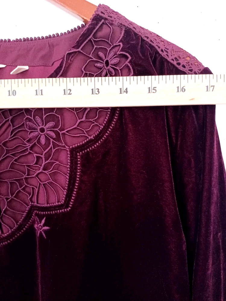 Womens Velvet Lace Crochet Embroidered Blouse XL Gothic Fairy Ethereal Oxblood