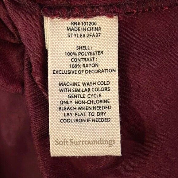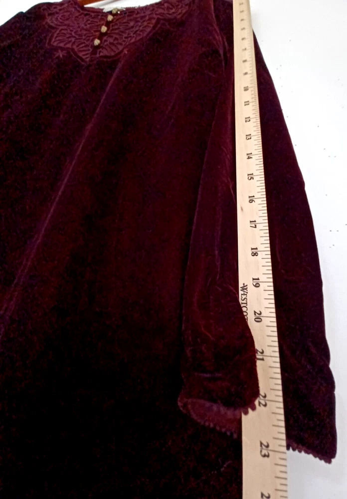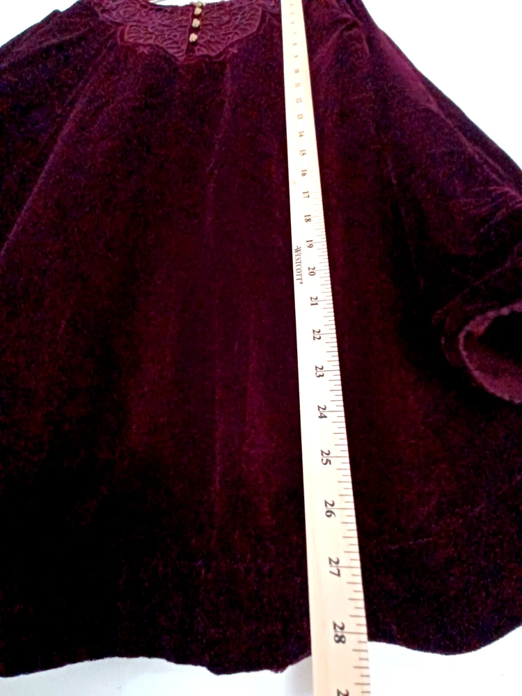 Vintage: No Sleeve Length: Notched trim sleeve Theme: Bohemian, Christmas, Classic, Gothic, Retro, Poet, Romantic, whimsigoth, fairygrunge, velvet, ethereal, Fairy Character: Fairy, downton abbey, fairygrunge, whimsigoth Type: Blouse Fabric Type: Velvet and Lace Pattern: Solid Sleeve Type: fluted Fit: Relaxed California Prop 65 Warning: n/a Neckline: Round Neck Accents: Button, Embroidered Occasion: Casual, Party/Cocktail, Travel, Workwear Size Type: Regular Season: Fall, Spring, Winter Size: XL Seller Notes: “CLEAN and in ready to wear condition no wear and tear an unworn item” Brand: Soft Surroundings Garment Care: Hand Wash Only Strap Type: n/a Personalize: No Department: Women Features: All Seasons, Breathable, Collarless, Heavyweight Closure: Pullover Personalization Instructions: n/a Style: Tunic Color: Red Handmade: No Country of Origin: China Material: Polyester, Rayon