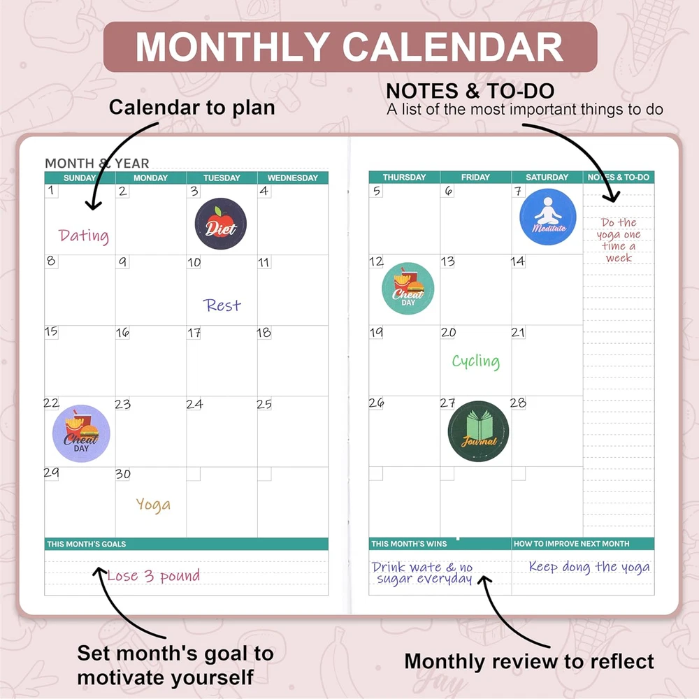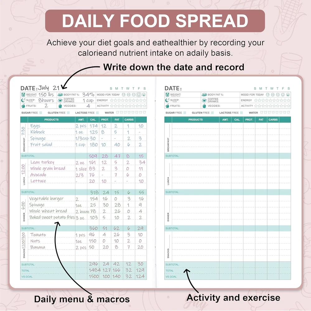 Women�s Weight Loss Food Journal Meal Planner 6 Months Rose Gold