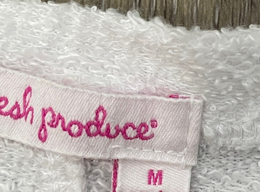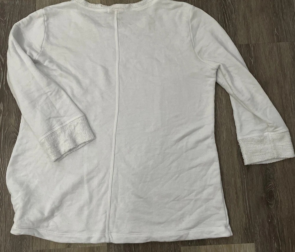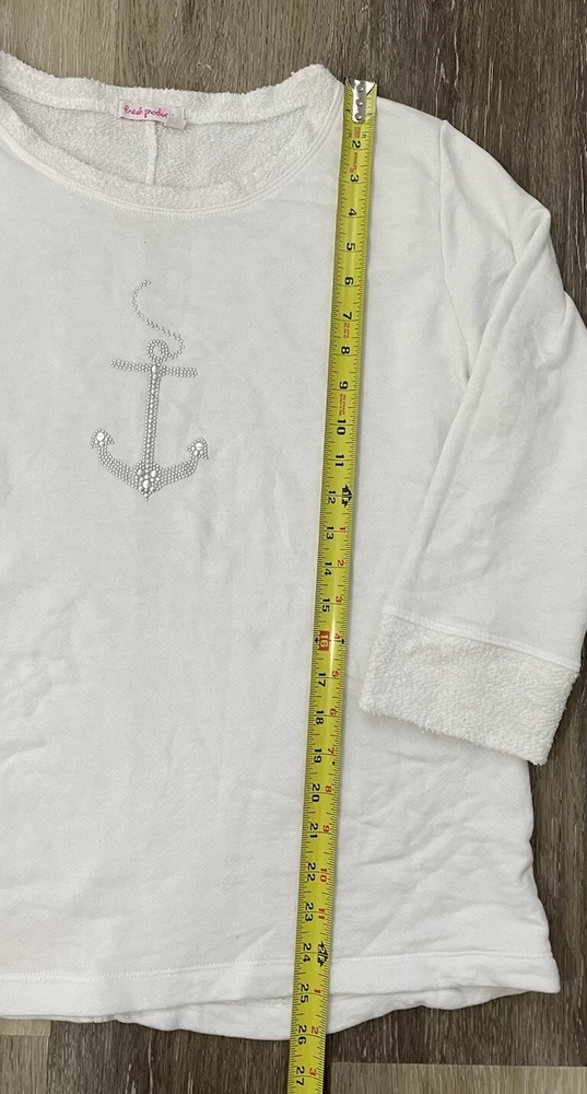 Fresh produce womens medium white pullover terry sweatshirt with studded anchor measurements in photos no flaws, gently pre-owned