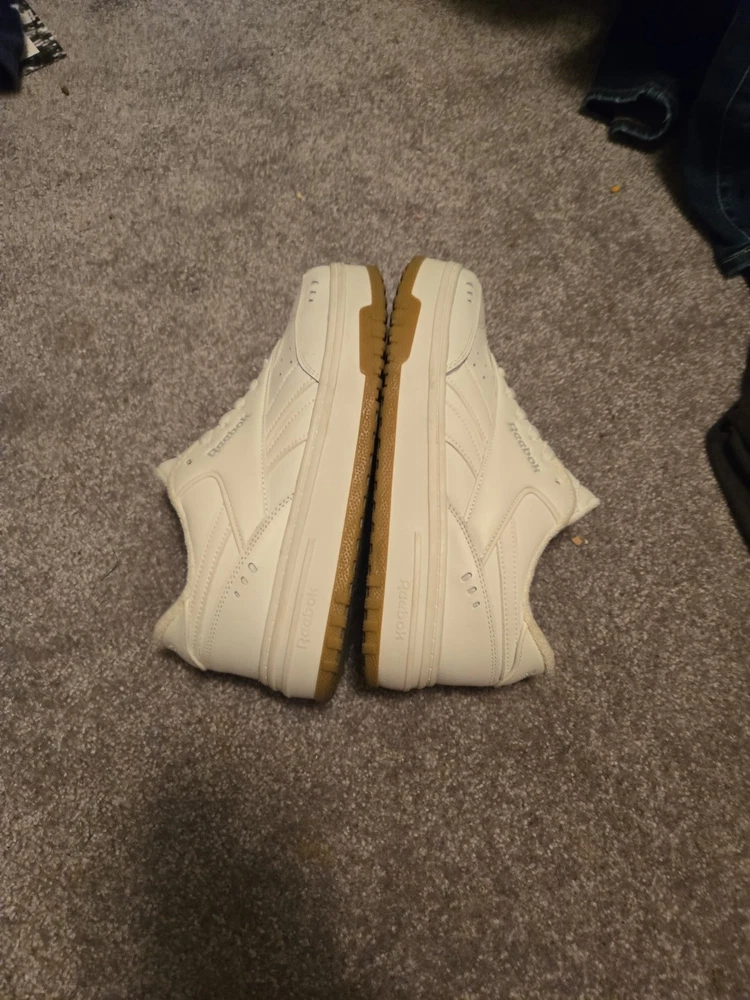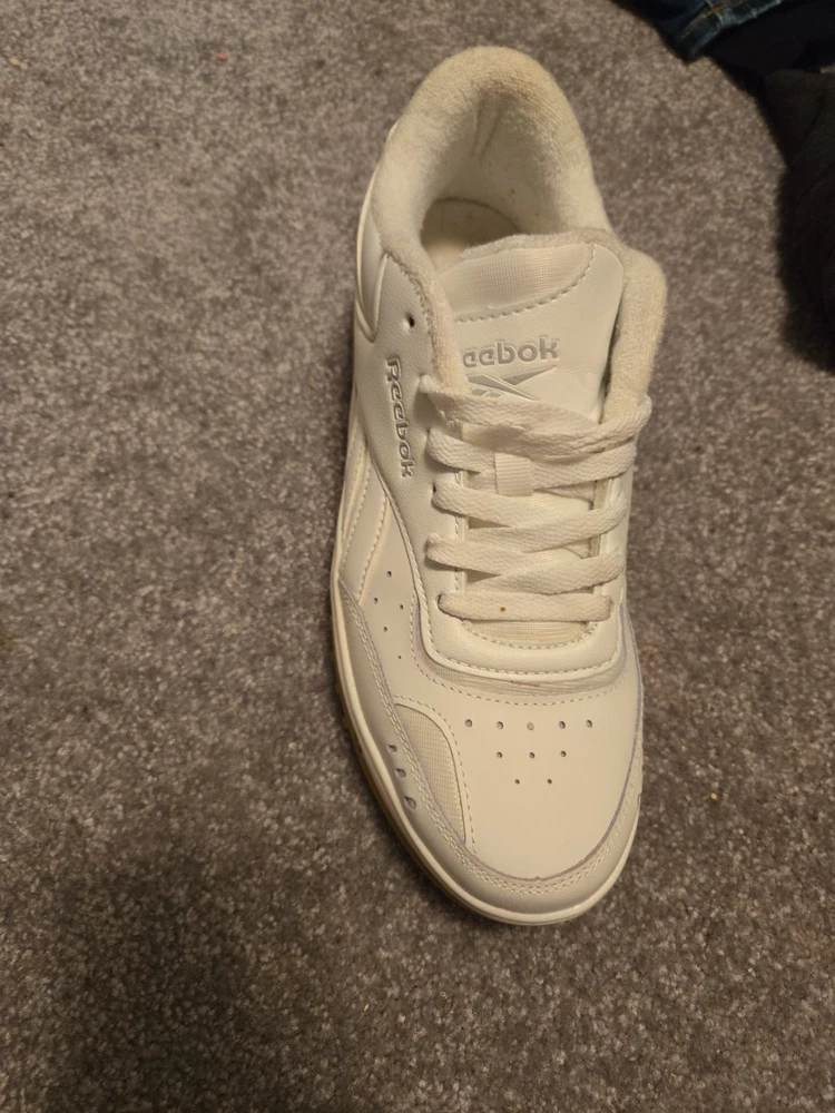 These are Women's White Reebok Shoes in Size 10 with a classic lace-up closure and low-top sneaker style. The shoes feature a solid white color with accents of lace and the Reebok logo, made from leather with a cushioned insole for comfort. They are suitable for casual occasions and various activities like walking, school, cross-training, and dance, making them versatile for everyday wear. The Reebok Classics model offers a timeless and stylish design perfect for any season.