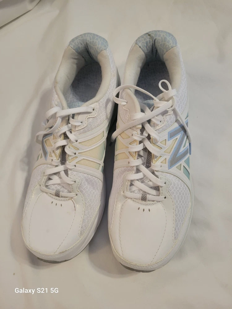 These New Balance sneakers are the perfect addition to any athletic shoe collection. The white, synthetic upper material is accented with lace and the New Balance logo, giving them a stylish touch. The shoes have a UK size of 6.5, US size of 8.5, and EU size of 40, making them a comfortable fit for most feet. They are part of the New Balance Fresh Foam product line and feature a cushioned sole for added comfort during activities like walking. These shoes are pre-owned but have been well-maintained and show minimal signs of wear. Perfect for anyone looking for a fashionable and functional pair of athletic shoes.