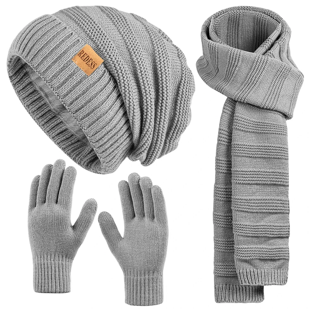 ❄️ Women’s Winter Knit Hat, Scarf & Gloves 3-Piece Set – Thick Warm Lining, Fashion Solid Colors Stay warm, stylish, and comfortable all winter long with this Women’s 3-Piece Winter Knit Set , including a cozy beanie hat , matching scarf , and warm gloves . Designed with soft, thick lining and high-quality knit craftsmanship, this set provides excellent protection against cold weather while adding a fashionable touch to your everyday outfits. ⭐ Key Features 🔥 Thick & Warm Inner Lining Each piece is made with soft, insulating polyester knit to keep you warm during cold winter days. 🧶 High-Quality Knit Craftsmanship Durable knitting ensures long-lasting wear, comfort, and flexibility. 🎨 Multiple Color Options Choose from a variety of solid colors to match your winter wardrobe. 👩 Designed for Women Fashionable winter accessories suitable for daily wear, outdoor activities, commuting, and travel. 👗 Stylish & Practical Perfect for keeping warm while maintaining a chic and elegant winter look. 📐 Product Specifications Item Type: Scarf, Hat & Glove Set (3 Pieces) Material: Polyester Craft: Knit Pattern: Solid Color Gender: Women Department: Adult Style: Fashion Winter Wear Origin: USA 📦 Package Includes 1 × Winter Knit Beanie Hat 1 × Matching Scarf 1 × Pair of Warm Gloves 💯 Return & Refund Policy We offer free returns or a full refund for any item that arrives damaged, defective, or not as described . Your satisfaction is our priority.