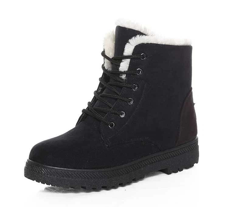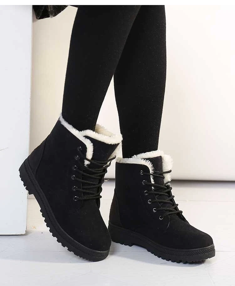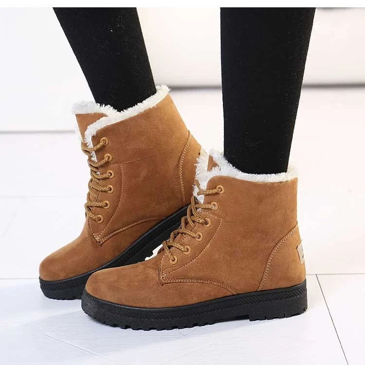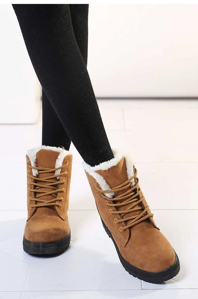 Women's Snow Ankle Boots Ladies Winter Warm Flat Fur Lined Low Heel Shoes Women's Snow Ankle Boots - Winter Warm Fur-Lined Low Heel Shoes Stay cozy and stylish this winter with these Women's Snow Ankle Boots. Features Material: Suede upper with fluffy lining for warmth and comfort. Sole: Durable, non-slip, and wear-resistant soft plastic. Heel: Low flat heel (1-3CM) for all-day comfort. Fastening: Easy lace-up design. Versatile Style: Perfect for daily wear, walking, work, outdoor activities, or snowy days. Upgrade your winter wardrobe with these fashionable and functional boot! Shoe Size Chart US Size UK Size EU Size Foot Length (inches) Foot Length (cm) 5 3 36 8.6" 22.0 6 4 37 8.9" 22.7 7 5 38 9.3" 23.7 8 6 39 9.6" 24.5 9 7 40 10.0" 25.4 10 8 41 10.3" 26.2 11 9 42 10.7" 27.2