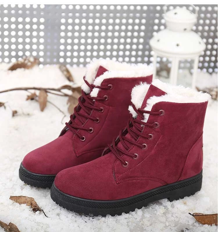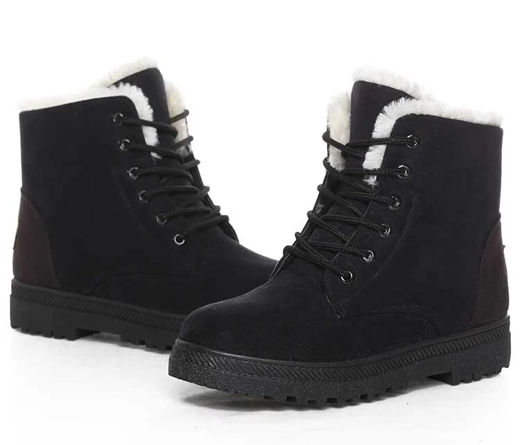 Personalize: No Country/Region of Manufacture: China Pattern: Solid Occasion: Activewear, Business, Casual, Formal, Travel, Workwear Closure: Lace Up Shoe Width: Standard Outsole Material: Rubber Style: Bootie Department: Women Brand: Unbranded Customized: No Heel Style: Flat Type: Boot Heel Height: Flat (Under 1 in) Insole Material: Artificial Fur Features: Lined, Non-Slip, Plush Lining, Warm Toe Shape: Round Toe Shoe Shaft Style: Ankle Fabric Type: Suede Lining Material: Artificial short plush Season: Winter Color: Black, Yellow, Red, Blue Upper Material: Suede Theme: Winter, Snow Calf Width: Regular Vintage: No