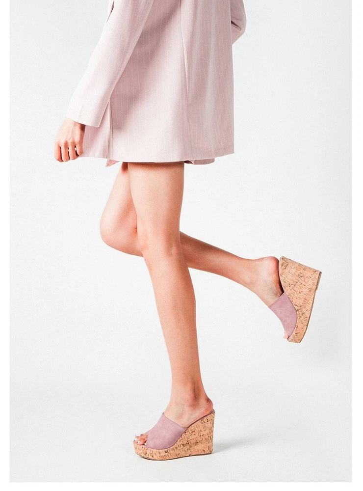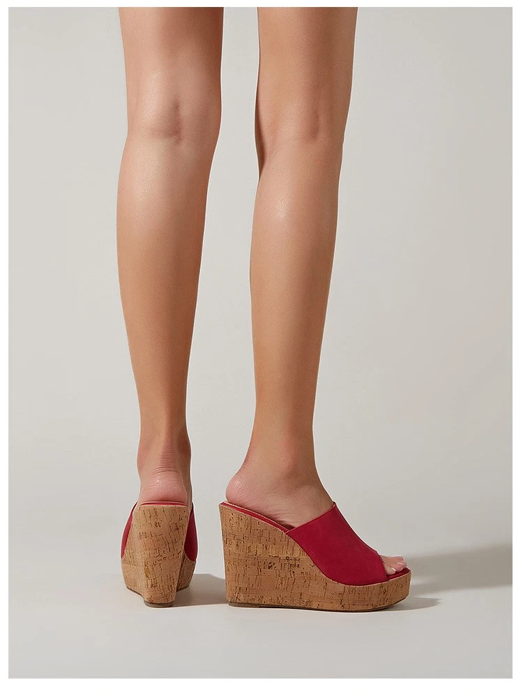 Women's Wood Grain High Wedge Heel Platform Mules Open Toe Sandal Slippers Slide