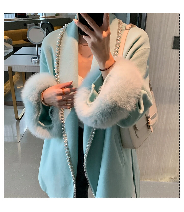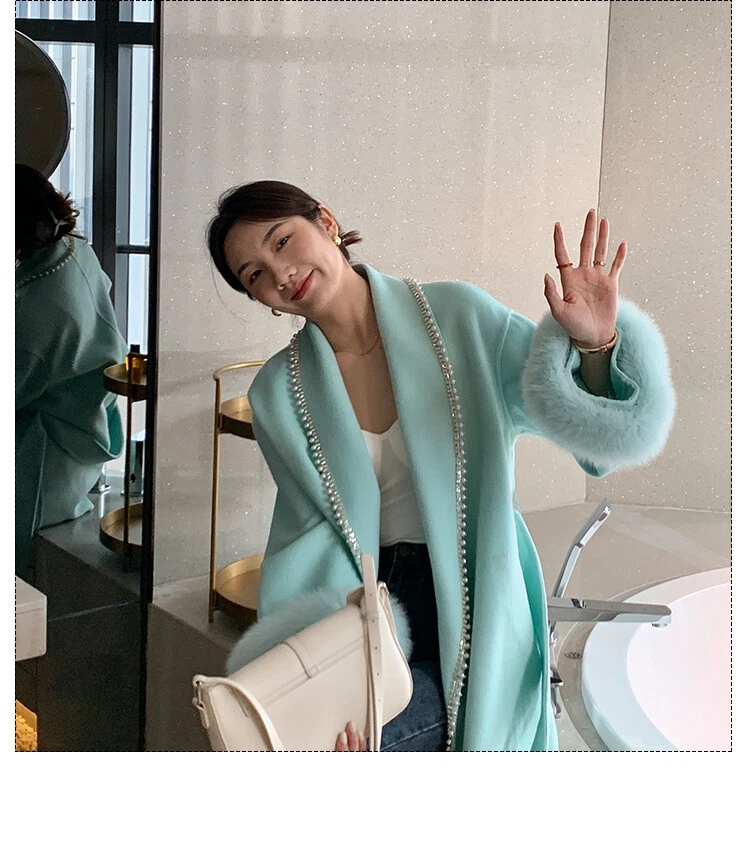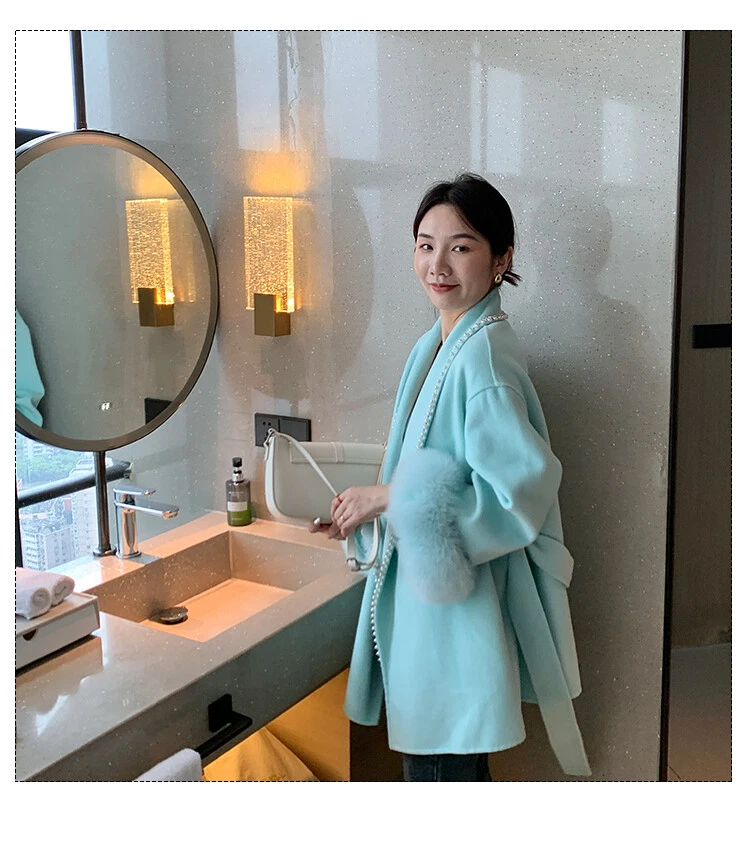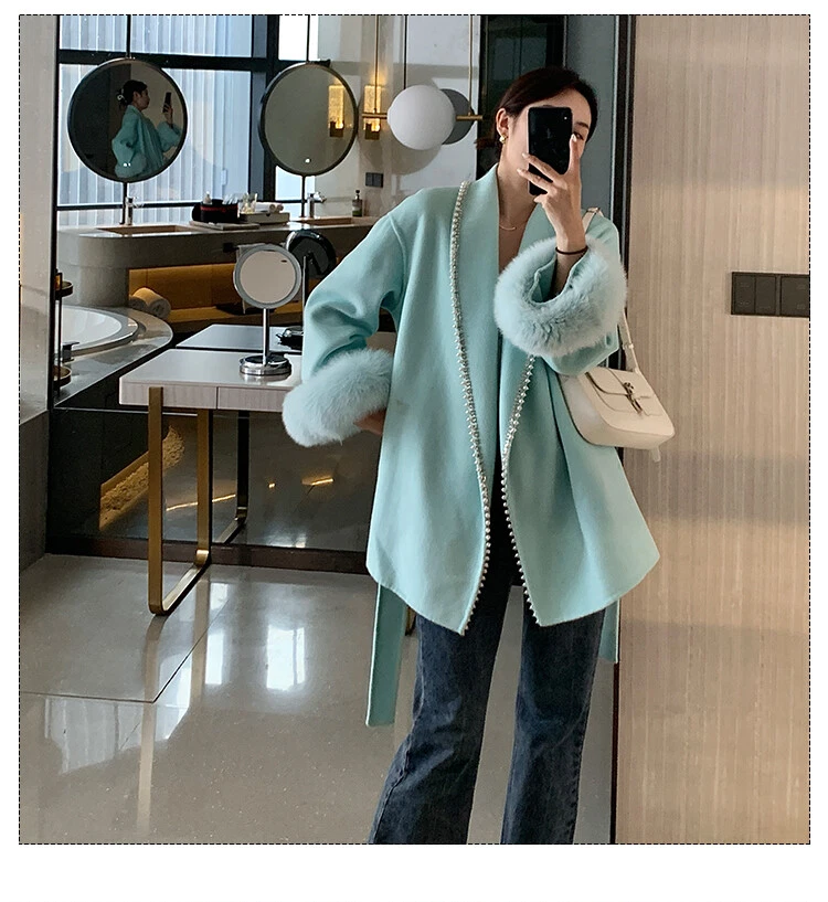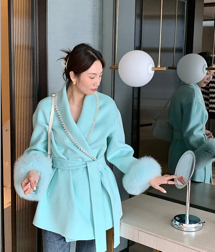 The mint color is very pretty, the fur is soft, and the product is exactly as shown in the detailed image. It is an oversized hooded jacket, so it looks big, but I wear it without worrying about the cold weather. I am very satisfied with this product.