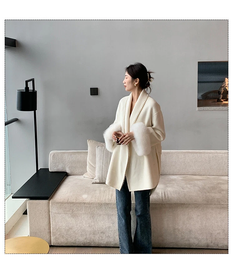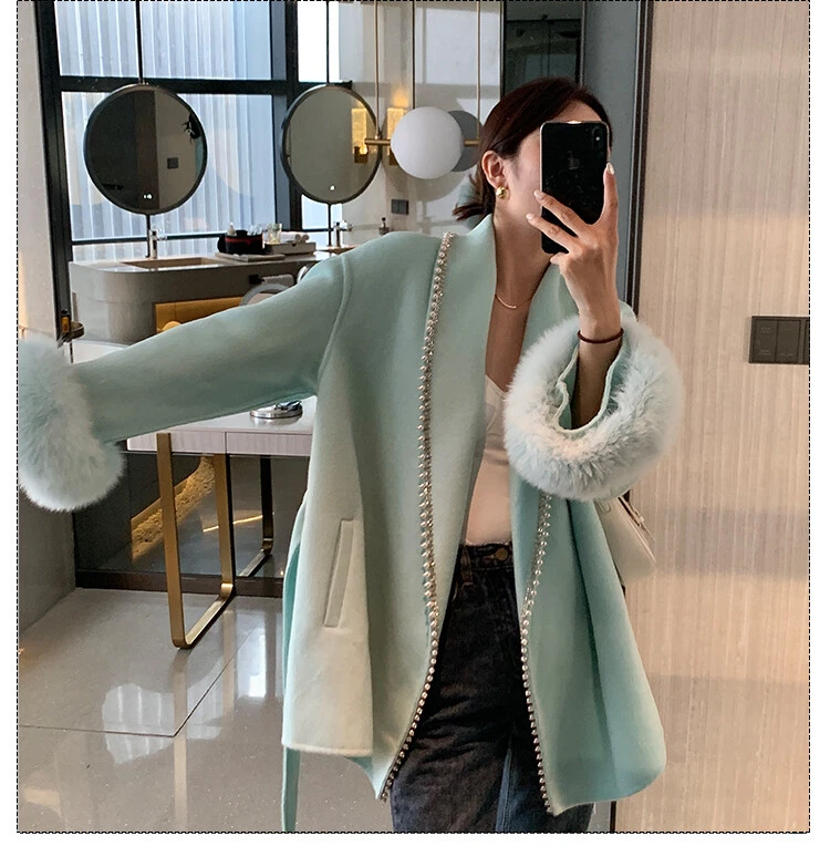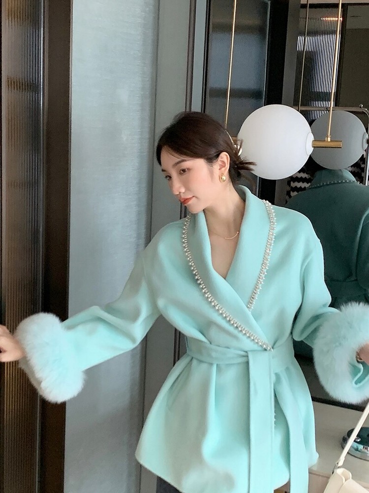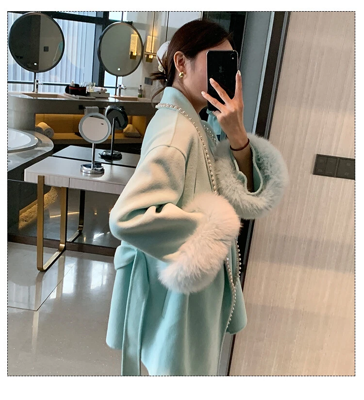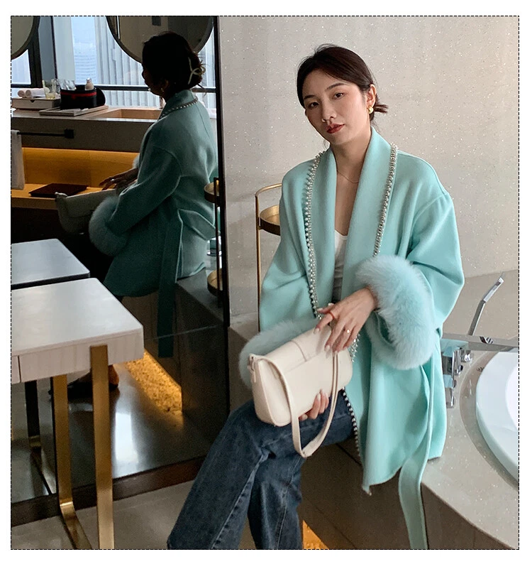 The mint color is very pretty, the fur is soft, and the product is exactly as shown in the detailed image. It is an oversized hooded jacket, so it looks big, but I wear it without worrying about the cold weather. I am very satisfied with this product.