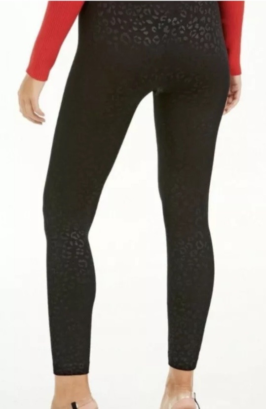 This is a pair of women's black leggings in size XS/S from the brand INC International Concepts. They feature a high rise contour waistband and are made of spandex. The leggings have a leopard print design and are new with tags. They are suitable for casual occasions and are not vintage or personalized. The leggings have a regular size type and are made in China.
