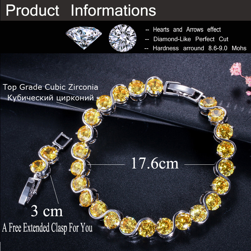 Luxury Holiday Xmas Jewelry Yellow Citrine Gems Women Girls Silver CZ Bracelet Specifications : 1. Condition: New 2. Material : Cubic Zirconia 3. Bracelet Length :17.6 cm or 20.6 cm 4.Metal Color : Silver Plated Features : 1. Cubic Zirconia High Quality Material - Diamond-like Brilliance , Prong Setting and CZ Stone are stable. 2. It will be an ideal gift for your girlfriend, wife, fiancee, daughter, mother, your special someone, or just yourself. 3. Perfect for many Occasion: Daily wear , Shopping , Anniversary , Party ,Wedding , Prom, etc. Package Includes: 1Pc Bracelet Payment Delivery details Terms of sales & Feedbacks About us & Contact us Our commitment Payment 1. We only ship item to your Ebay verified address . Please Make sure all address are the same 2.Please leave note in ebay when making the payment if you have any special request (colors/size). Delivery details We only send items to the registered eBay address.Items will be shipped within 2 business days from the date payment is received (not include public holiday and weekend) . As per eBay regulations, import duties, taxes, and customs charges are the buyer's responsibility. Please check with your country's customs office to determine what these additional costs may be prior to bidding or buying. Terms of sales & Feedbacks After-Sale Please contact us to request a return/replace/refund authorization .It will be best if you use ebay message to contact me. 1, Return and replacement request is available only the requests within 30 days after parcel received. 2, Returning the item as the same condition as received. Situation and solution Defectives ---Please contact us and provide a photo of the defective part. After situation confirmed,we will offer you refund/return/replacement according to the situation Not as Described ---Please contact us and provide a photo of the wrong part. After situation confirmed,we will offer you refund/return/replacement according to the situation Not Received ---Please undersatnding shipping on the way was out of our control ,because of the busy shipping season,holidays,bad weather or force majeure etc. It may be delay for days. But if it took too much time and not deliveried, Please message me, I will offer you solution for it. Feedbacks 1. If you are satisfied with our service, please leave us a + Good feedback and rate the details of the transaction (DSR) with a. . When you rate the shipping time part please take international transit into consideration.] Your recognition will make us more confident to develop business and serve you better. 2. Please contact us first if you have any problem with the items,we will solve it in time ! 3. Please do not leave Neutral or Negative Feedback before you contact us, Thanks For Your Business ! About us & Contact us Working time: Chinese time(Eastern eight zones):Monday to Friday ,9:00 am to 6:00 pm. We do not work on chinese legal holiday. Message reply: We will reply all messages within 24 hours of business time. Please contact us via ebay message, it was the best way for both you and us to solve problems. Any questions or anything you need, please feel free to contact us. Our commitment 1.Wholesale price will be offered to you if you need in bulk ! 2.About Size