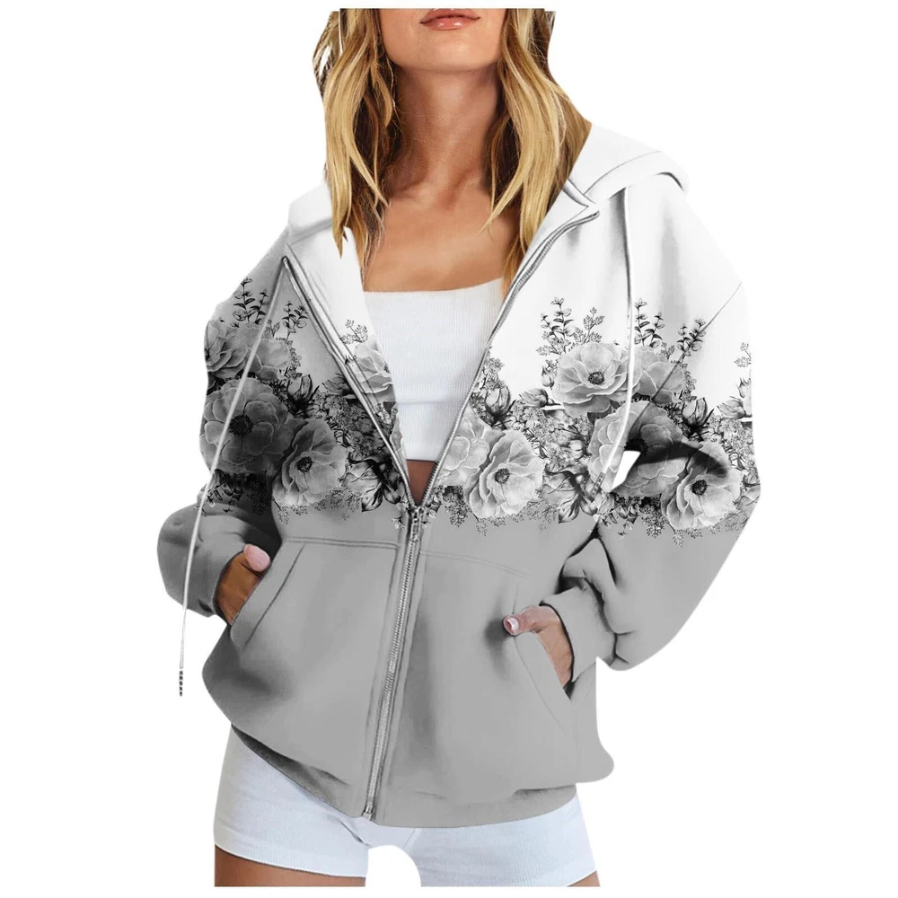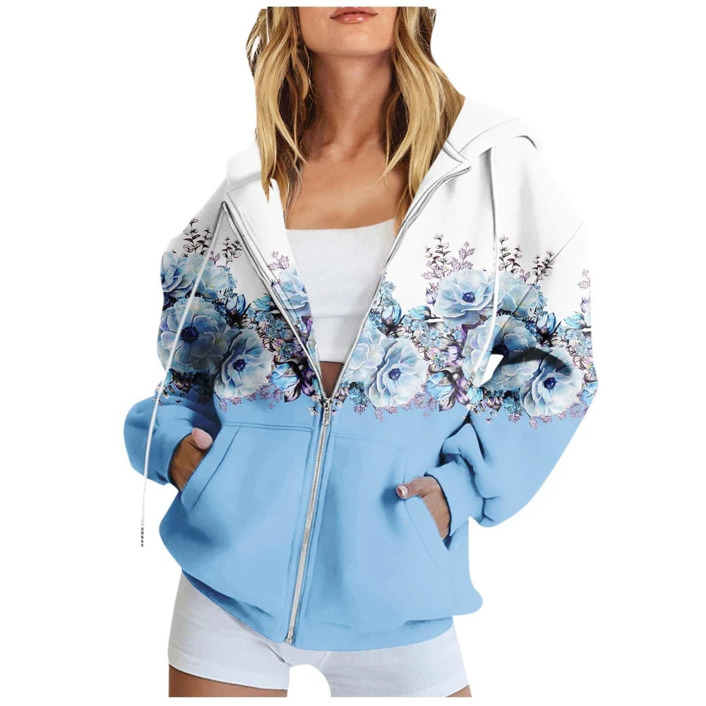 Features: Comfy Material: This womens sweatshirt is made of cotton,polyester and spandex,the material is thick and comfortable,keep you warm in fall and winter :This womens fall fashion 2023 is easy to pair with casual pants, jeans, joggers, shorts, sneaker, casual shoes to creating a fashion and pretty looking in spring, autumn and winter. You can also anything you like inside,like tank top, crop top, vest, etc. Occasion - Suitable for running, playing , dancing, cycling, playing , hiking, walking, exercising, home, daily wear, travel, for fall and winter. Design: Oversized Sweatshirt/ Hooded/drawstring Collar/ Full Zip Up Hoodie/ Gothic / Fleece Jacket/ Ribbed Hem And Cuffs/ Baggy / Crewneck Sweatshirts/ Clothes Wash - Machine washable, hand washes cold, dry flat in shade. Do not bleach. Product Description: Womens Fall Fashion Women's Long Sleeve Floral Print Sweatshirt Long Sleeve Pocket Jacket Zipper Hoodie Coat Material: polyester Color: as the picture shows, (Due to the difference between different monitors, the picture may have slight color difference. please make sure you do not mind before ordering, Thank you!) Package weight: 300g Package size: 30x25x2cm,(Please allow 1-3mm error due to manual measurement. please make sure you do not mind before ordering.) Size US UK EU Bust Shoulder Sleeve Length S 4 8 34 101cm/39.76'' 42cm/16.54'' 61cm/24.02'' 66cm/25.98'' M 6 10 36 106cm/41.73'' 43cm/16.93'' 62cm/24.41'' 68cm/26.77'' L 8 12 38 111cm/43.70'' 44cm/17.32'' 63cm/24.80'' 70cm/27.56'' XL 10 14 40 116cm/45.67'' 45cm/17.72'' 64cm/25.20'' 72cm/28.35'' XXL 12 16 42 123cm/48.43'' 46cm/18.11'' 65cm/25.59'' 74cm/29.13'' XXXL 14 18 44 130cm/51.18'' 47cm/18.50'' 66cm/25.98'' 76cm/29.92'' Size:S US:4 UK:8 EU:34 Bust:101cm/39.76'' Shoulder:42cm/16.54'' Sleeve:61cm/24.02'' Length:66cm/25.98'' Size:M US:6 UK:10 EU:36 Bust:106cm/41.73'' Shoulder:43cm/16.93'' Sleeve:62cm/24.41'' Length:68cm/26.77'' Size:L US:8 UK:12 EU:38 Bust:111cm/43.70'' Shoulder:44cm/17.32'' Sleeve:63cm/24.80'' Length:70cm/27.56'' Size:XL US:10 UK:14 EU:40 Bust:116cm/45.67'' Shoulder:45cm/17.72'' Sleeve:64cm/25.20'' Length:72cm/28.35'' Size:XXL US:12 UK:16 EU:42 Bust:123cm/48.43'' Shoulder:46cm/18.11'' Sleeve:65cm/25.59'' Length:74cm/29.13'' Size:XXXL US:14 UK:18 EU:44 Bust:130cm/51.18'' Shoulder:47cm/18.50'' Sleeve:66cm/25.98'' Length:76cm/29.92''