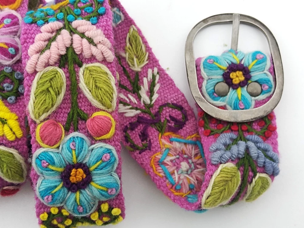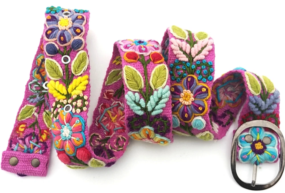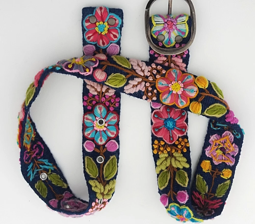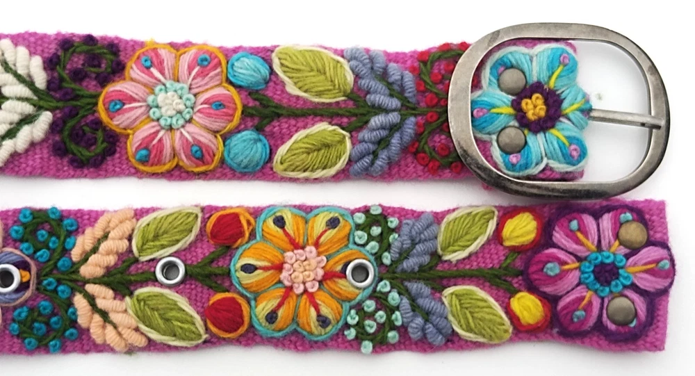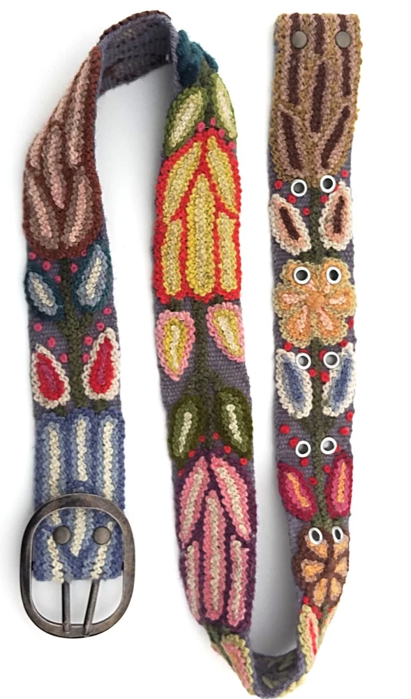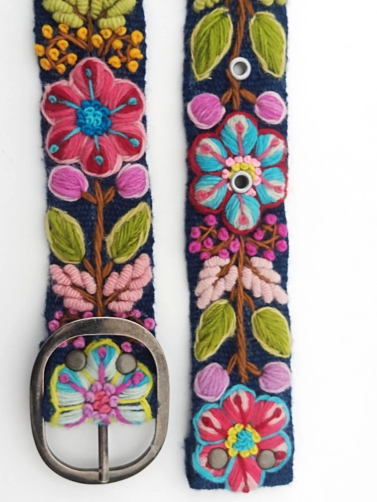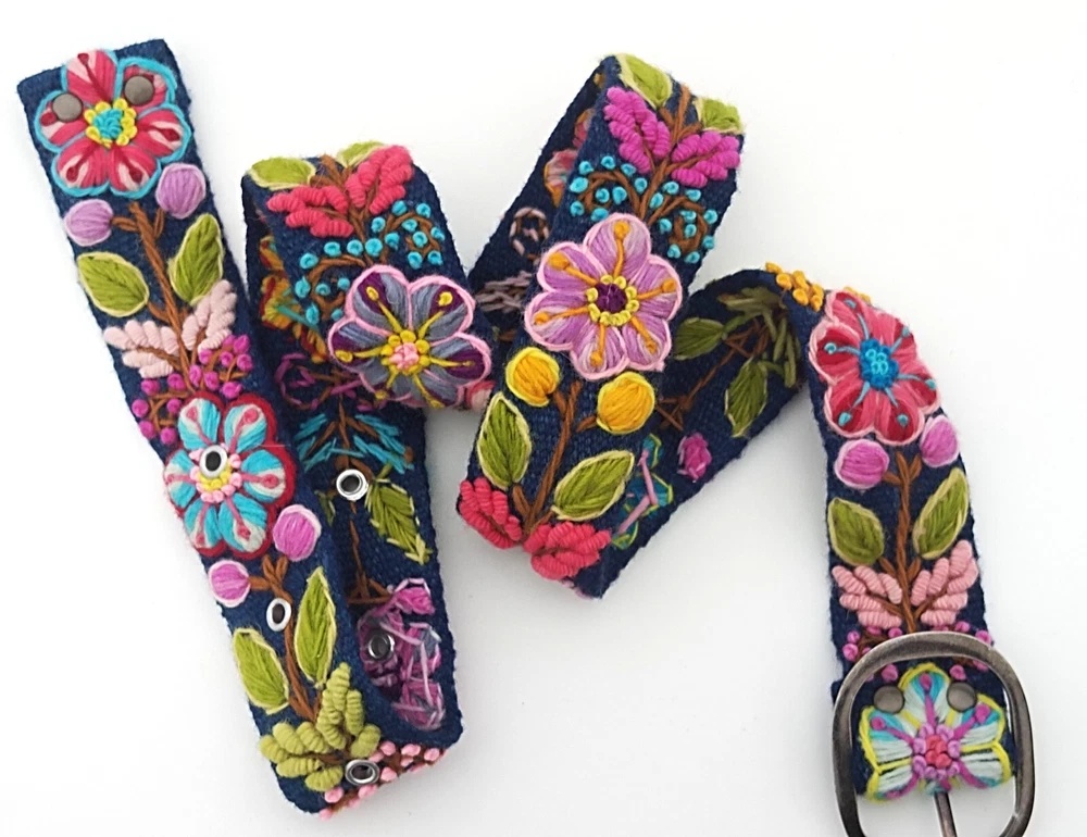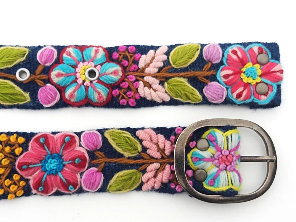 Estos cinturones están densamente bordados utilizando docenas de colores naturales y cada uno es único. Elegante diseño floral y un placer de usar, te traerá alegría a través de su belleza visual, ya que querrás usarlo una y otra vez. Cada cinturón 5 juegos de agujeros espaciados 2 "aparte por lo que son versátiles. Puede usar el mismo cinturón en la cintura o las caderas. También se estiran ligeramente, como un par de pantalones vaqueros, y se ajustarán a su cuerpo después de unos días de desgaste. Ancho de tamaño: 1.65 pulgadas (4.2cm) S 35" de largo (se adapta a 24" - 32") M 41" de largo (se adapta a 28" - 36") L 46" de largo (se adapta a 34" - 42") XL 50" de largo (se adapta a 38" - 46")