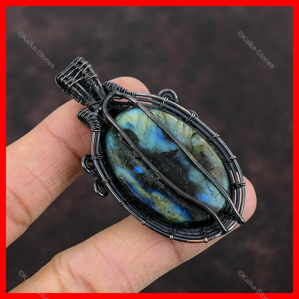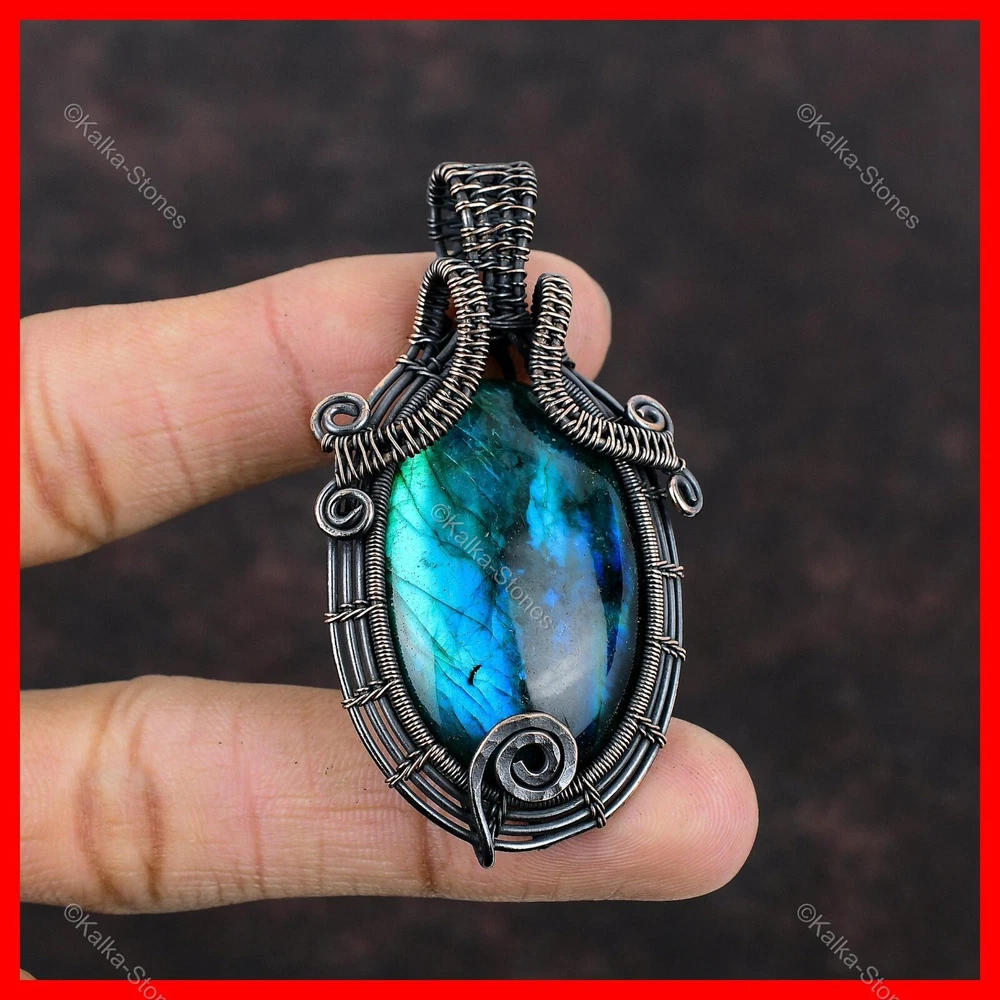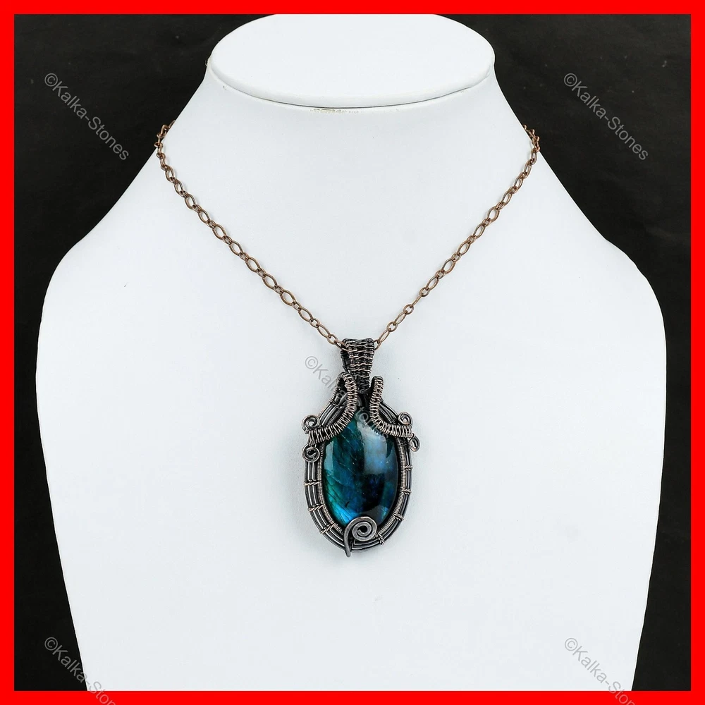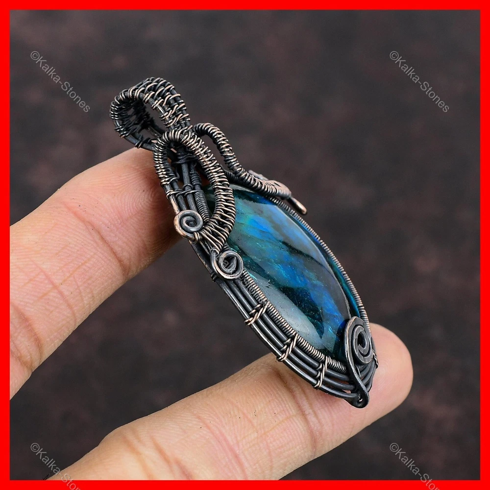 Womens day Sale Copper Neon Flash Labradorite Stone Unique Wire Wrapped Pendant