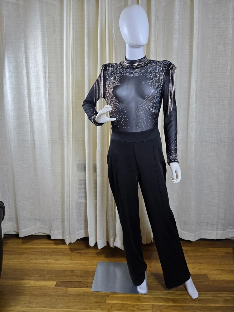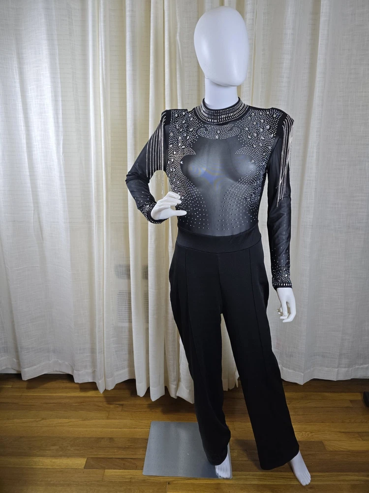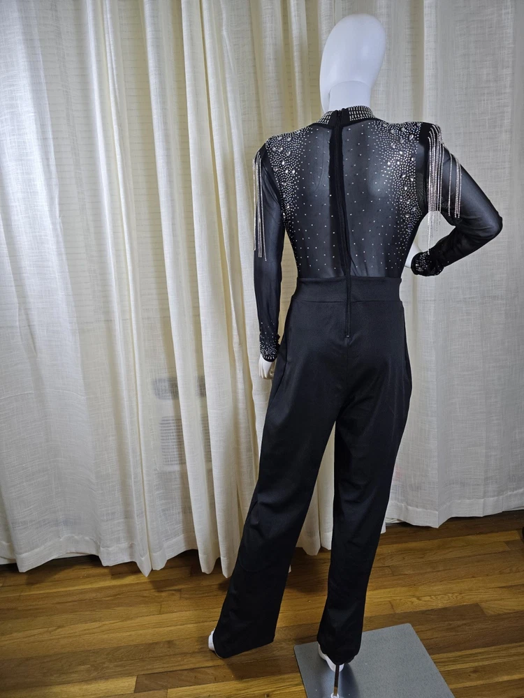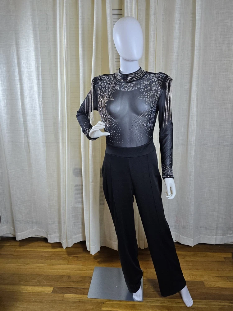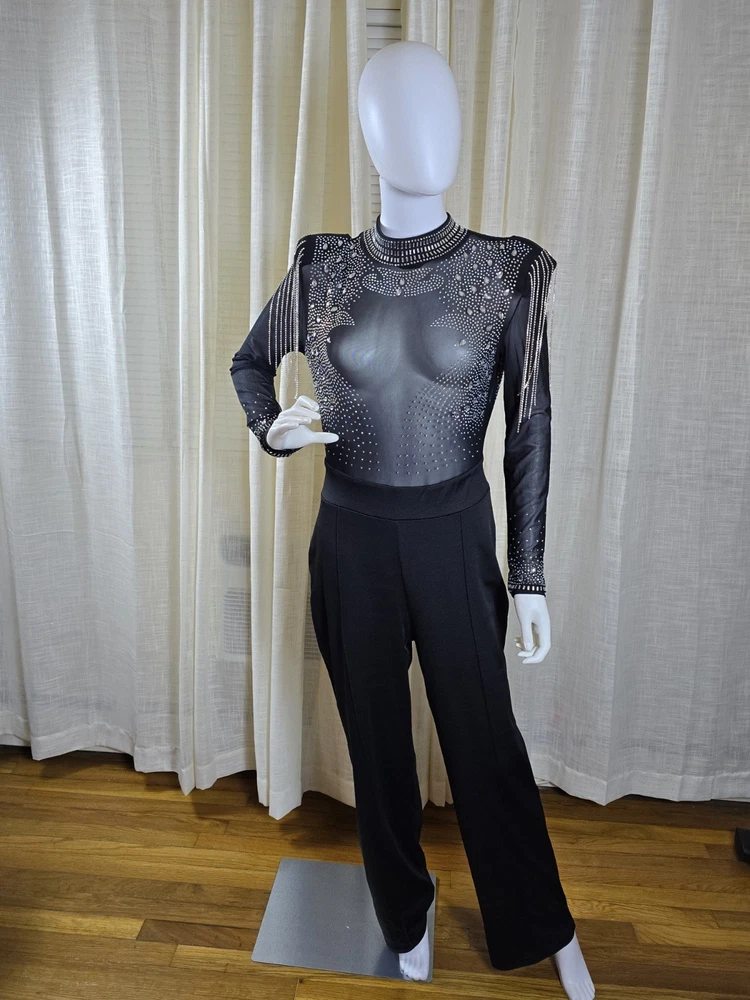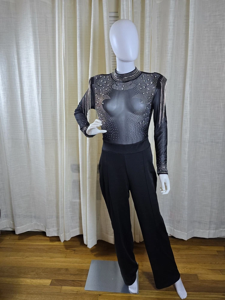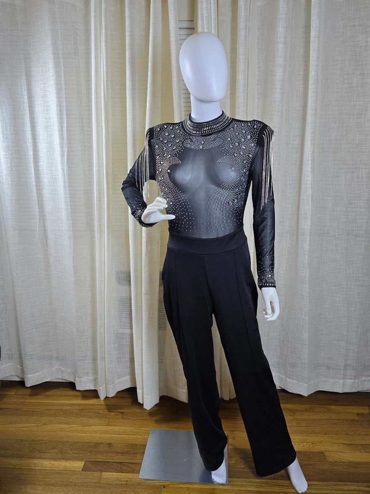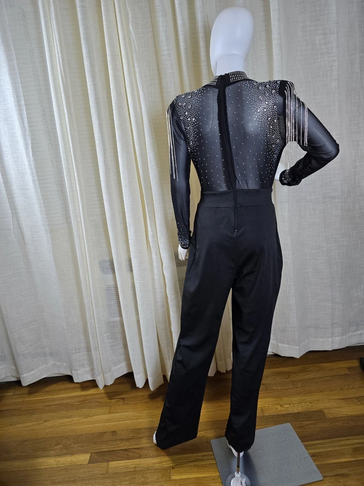 Womens long sleeve Mesh Rhinestone Black jumpsuit Size XL. Shipped with USPS Ground Advantage.