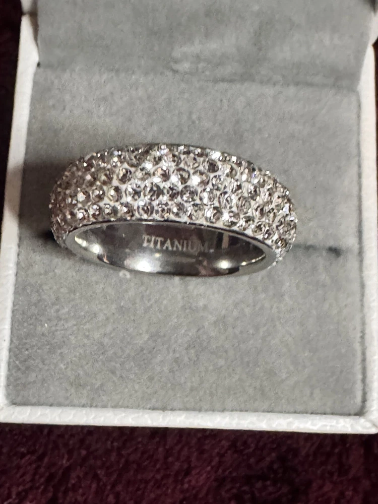 Women’s oversize eternity van in titanium with cubic zirconia stones size 9