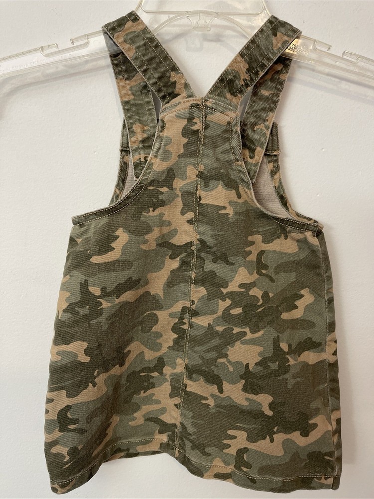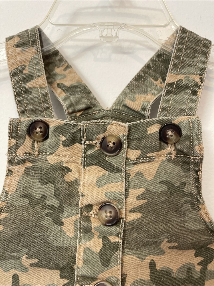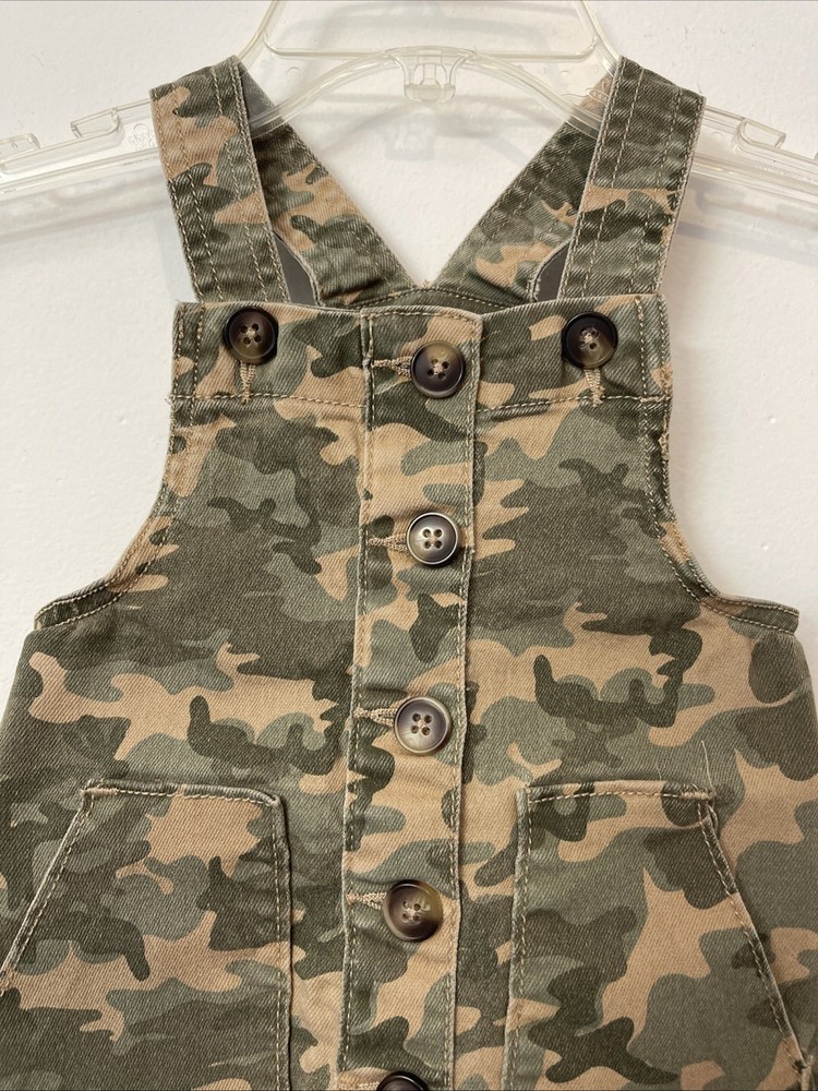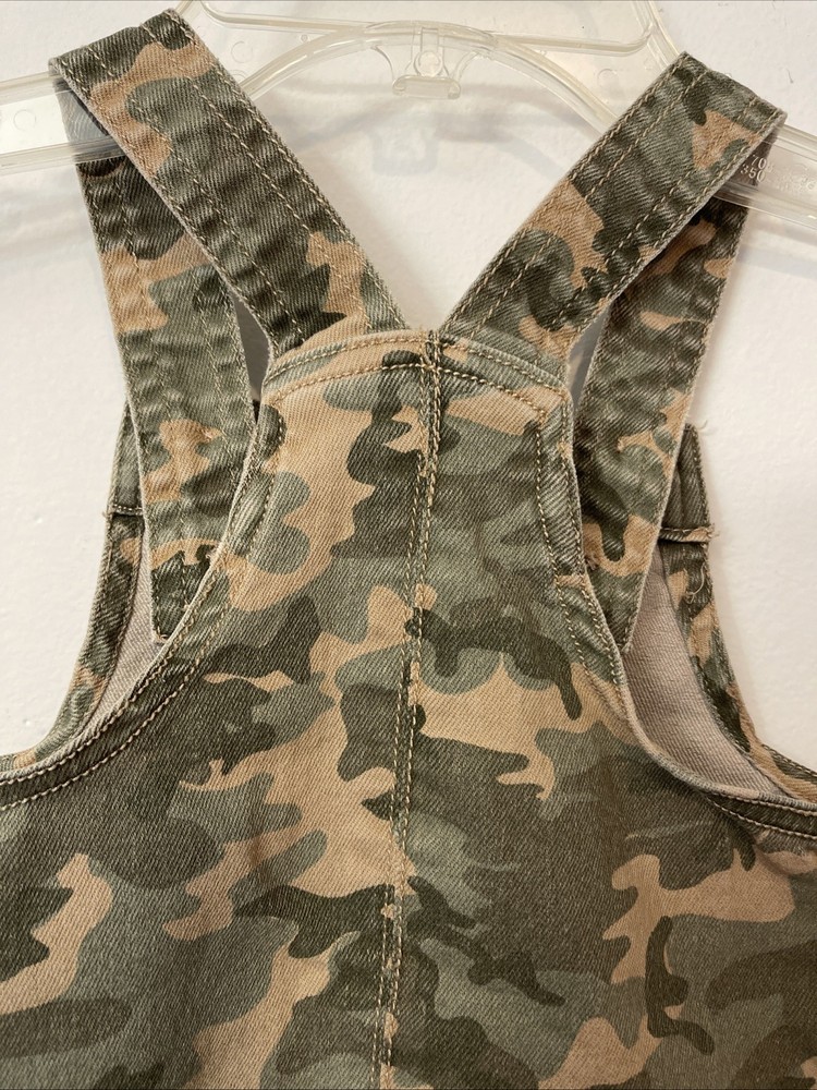 This Wonder Nation Girls 18 Months Green Camo Cotton-Blend Overall Dress is a stylish and comfortable outfit for young girls. This sleeveless dress features a square neckline and is made from a blend of polyester, spandex, and cotton. The knee-length overall dress in a green camo design is perfect for casual or everyday wear, allowing for ease of movement while maintaining a trendy style. Perfect for active little ones who love to explore and play in a cute and fashionable way.