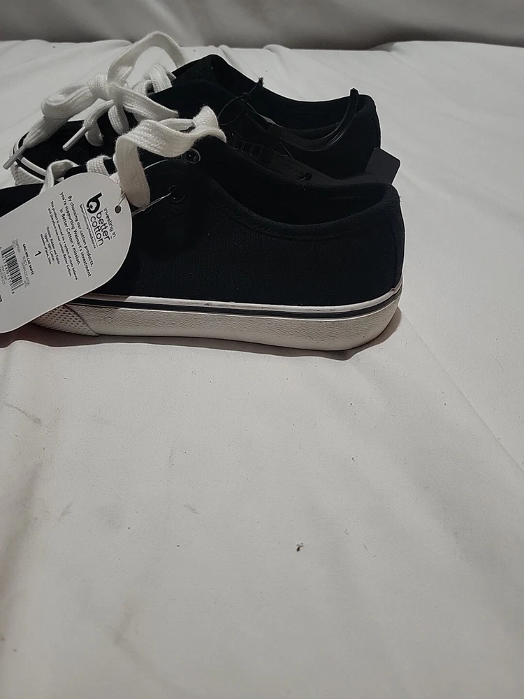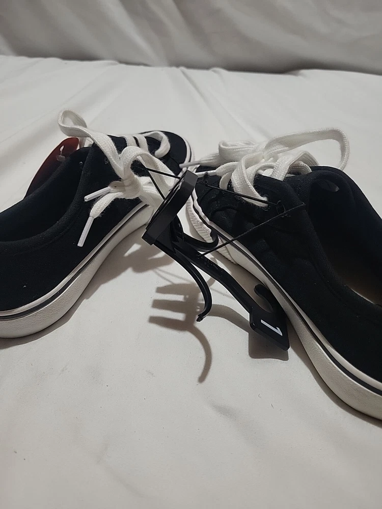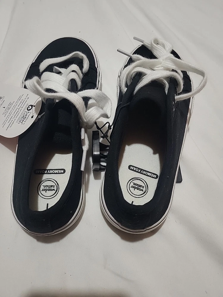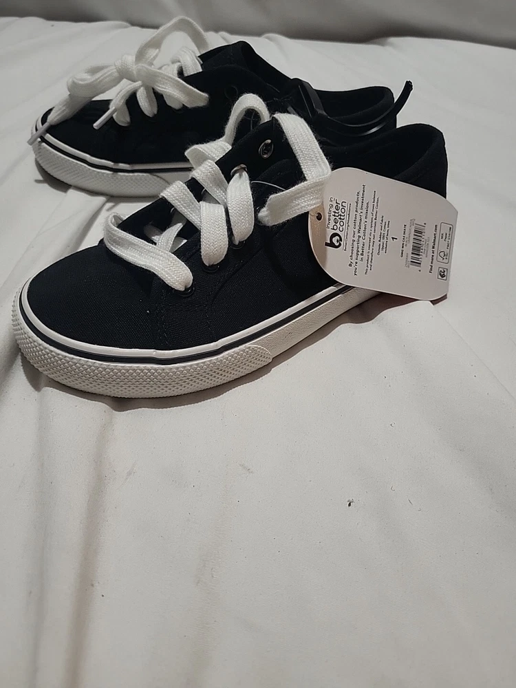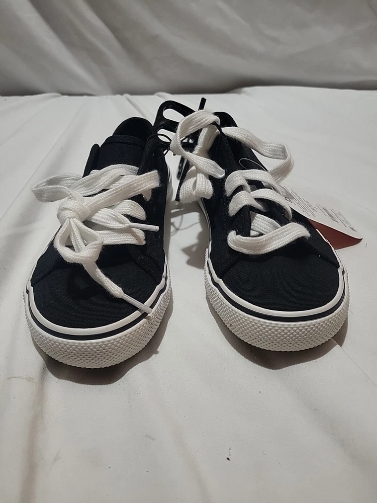 Wonder Nation Youth Black Canvas Skate Shoes Size 1 New