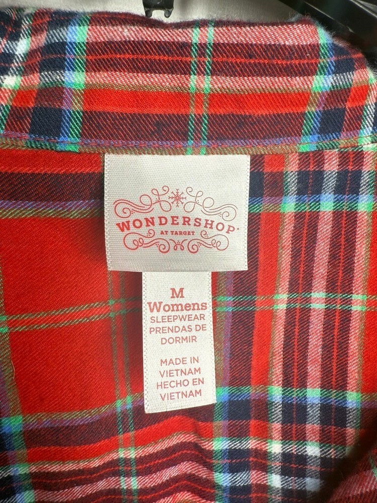 Wondershop Womens Red Green Long Sleeve Button Up Pajama Shirt Size Medium NWOT